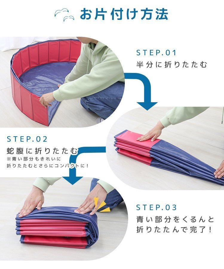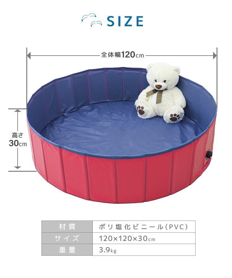 | 簡単設置、簡単片付けでマルチに使える折りたたみプール! 面倒な空気入れ作業がないので、パタパタ開いて水を入れたらすぐに遊べます。 ワンチャンの水遊びやお風呂としての使用の他、子供用のプールや砂場、室内ではボール遊びにもオススメ! 使い終わったら畳んでコンパクトに収納できます。 ※カラーボールは別売りです ■商品コード:GAC005FW ■商品仕様 カラー:フラワー サイズ:(約)120cm×120cm×30cm 重量:(約)3.9kg 素材:ポリ塩化ビニール(PVC) ■注意事項 ・使い始めは、素材特有の匂いがする場合があります。一日程度、風通しの良い場所に広げておくと解消されます。 ・製造過程の為、多少の折り目、製造時の汚れ、シミ、シワ、色落ち、若干の接着剤残りなどある場合がございます。 不良ではありません。これらを理由とする不良返品、不良交換はお受け致しかねます。予めご了承下さい。 ・必ず保護者同伴のもと、本商品をご利用下さい。 ・本品は水深が深くなるため、対象年齢未満のお子様は使用しないで下さい。 ・プールを置く付近に破損の原因となるトゲやガラス片、金属片、木片、砂利などがないか、ご確認下さい。 ・タバコや火気には近づけないで下さい。 ・プールは安定した平らな場所でご使用下さい。 傾斜のある場所、タイル・煉瓦など目地や段差のある場所でのご使用は変形・破損の原因になりますので避けて下さい。 ・表面に塗装、コーティング等の処理された場所でのご使用は塗装等が変色したりプール本体に色移りすることがあります。ご注意下さい。 ・商品は、モニターによって色合いが異なって見える場合があります。 ・仕様・デザインは改良のため予告なく変更することがあります。 ■保障期間 7日間 ※商品到着後7日以内の初期不良・破損のみご対応させていただきます。 【新品未使用品です】 |