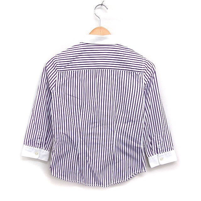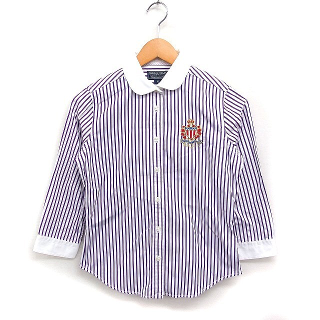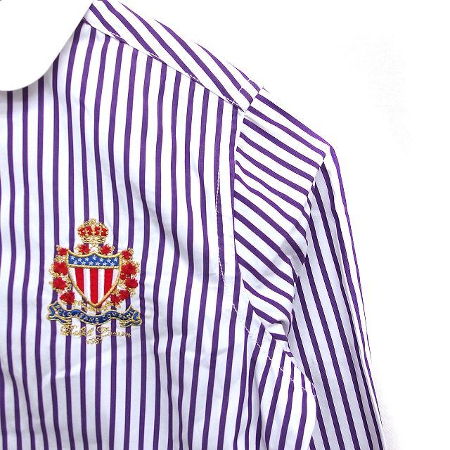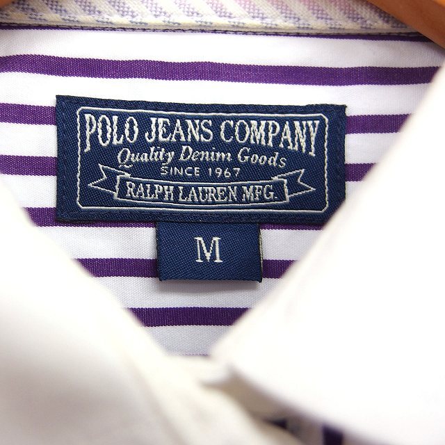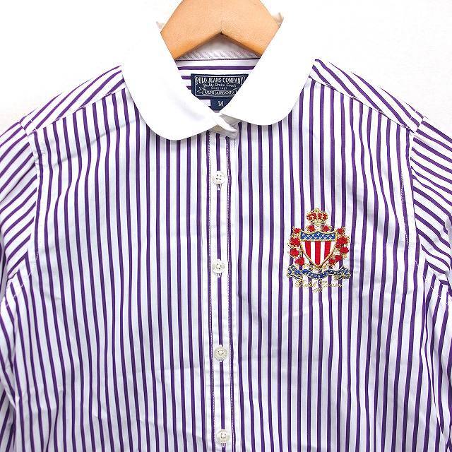ポロジーンズ ラルフローレン POLO JEANS 国内正規品 ストライプ柄 シャツ 丸衿 7分袖 刺繍エンブレム 綿 M 紫 白 /FT9 レディース