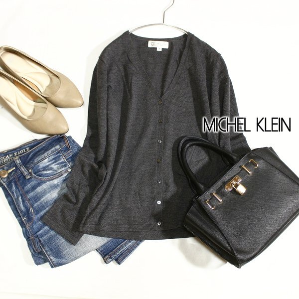 美品 MICHEL KLEIN ミッシェルクラン ウール100% 綺麗め ニット カーディガン 38号 M 秋 冬 25B11