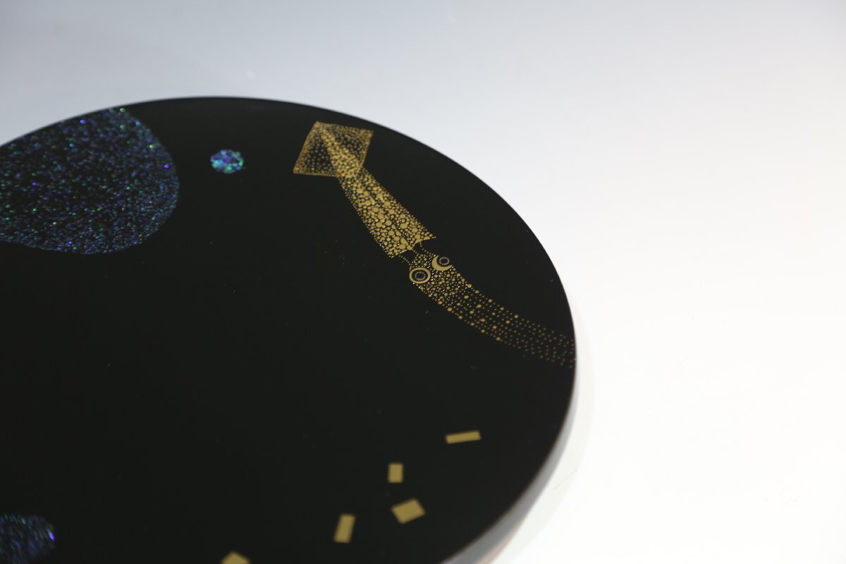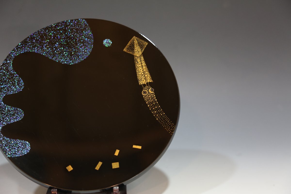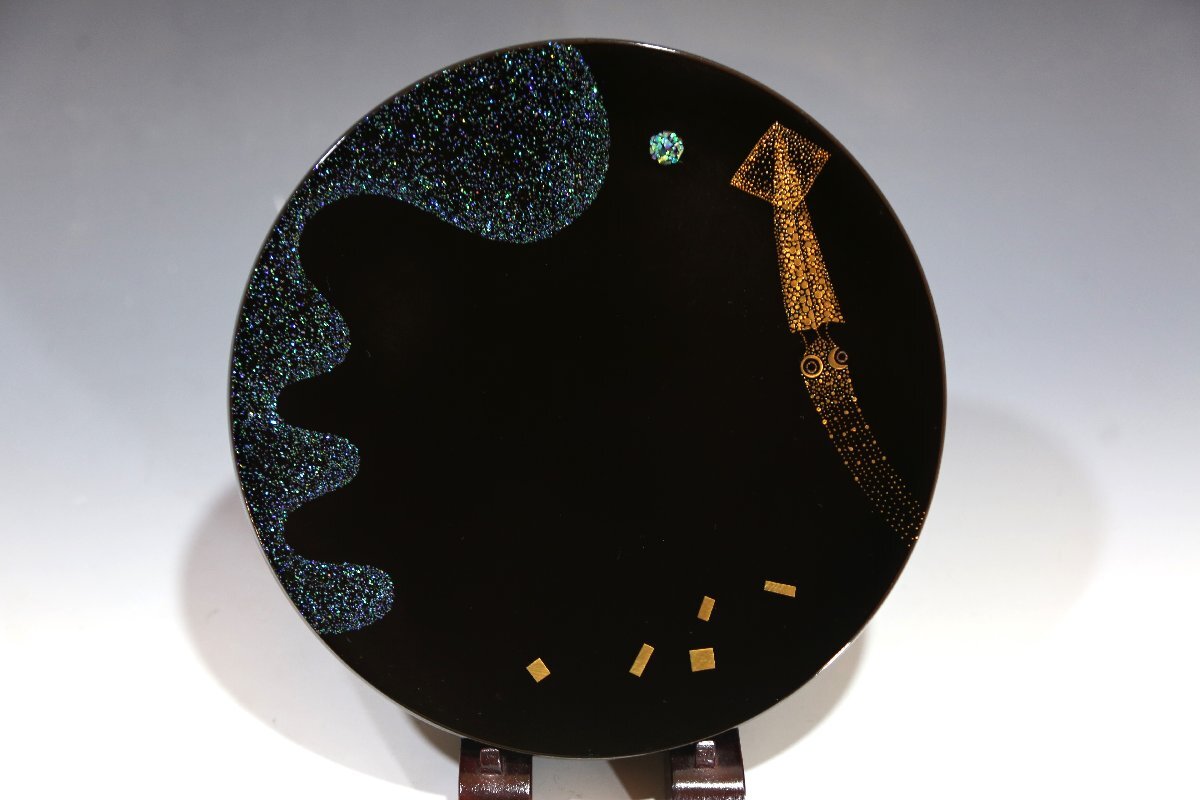 尾長保:漆芸家、日展特別会員。 昭和7年氷見市生まれ。蒔絵の山崎立山、文化勲章の佐治賢使に師事。 日展特選北斗賞、菊花賞、審査員4回、参与を経て、改組後は平成27年会員賞受賞。 現代工芸展と新工芸展で文部大臣賞、審査員も務める。 日工会展では総理大臣賞を2回受賞。平成12年文部大臣地域文化功労者表彰。皿立ては付きません。薄スレ少しありますが状態良好です。直径24cm、高さ3cm。ノークレーム、ノーリターンでお願い致します。この他にも出品しておりますのでご覧下さい。ここをクリック