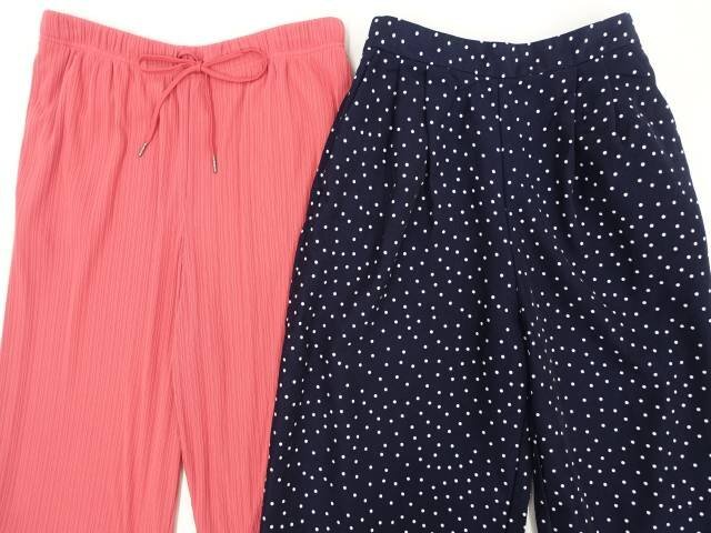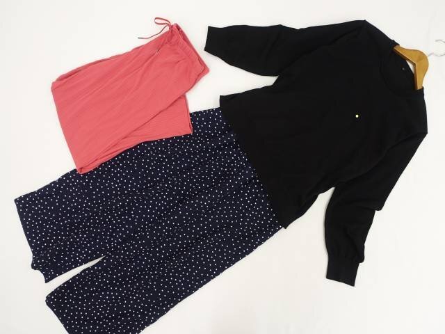 洗える長袖ニットセーター+ワイドパンツ+イージーパンツ コーディネート上下3点セット LL相当 ブラック/ネイビー地 ホワイト ドット柄/レッド系 シンプル・カジュアル系 20代・30代~