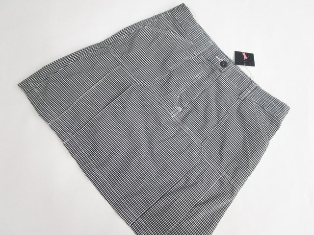 ミニ丈 インナーパンツ付きボックスプリーツスカート スポーツ ゴルフ L ホワイト×ブラック ギンガムチェック柄 【メール便可】