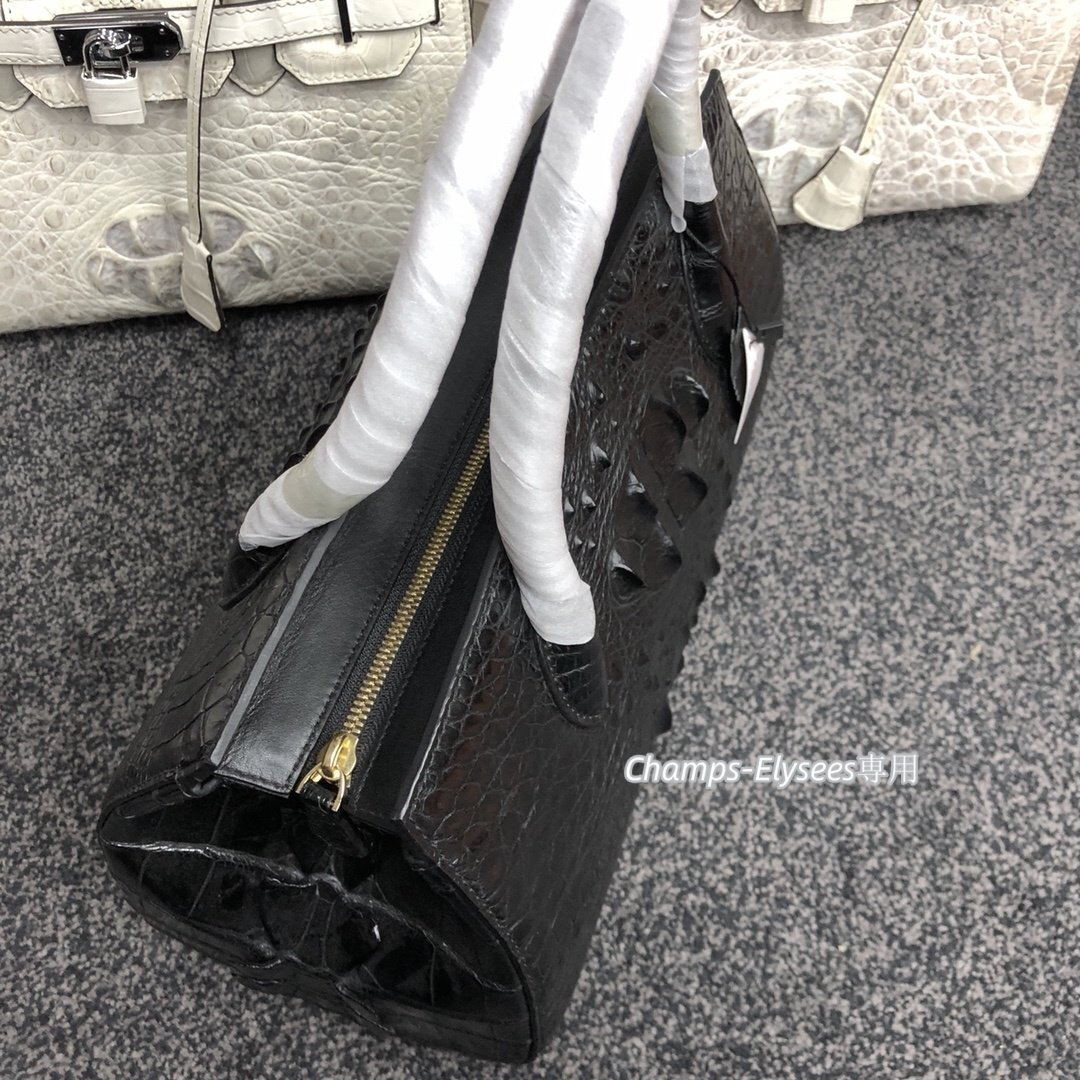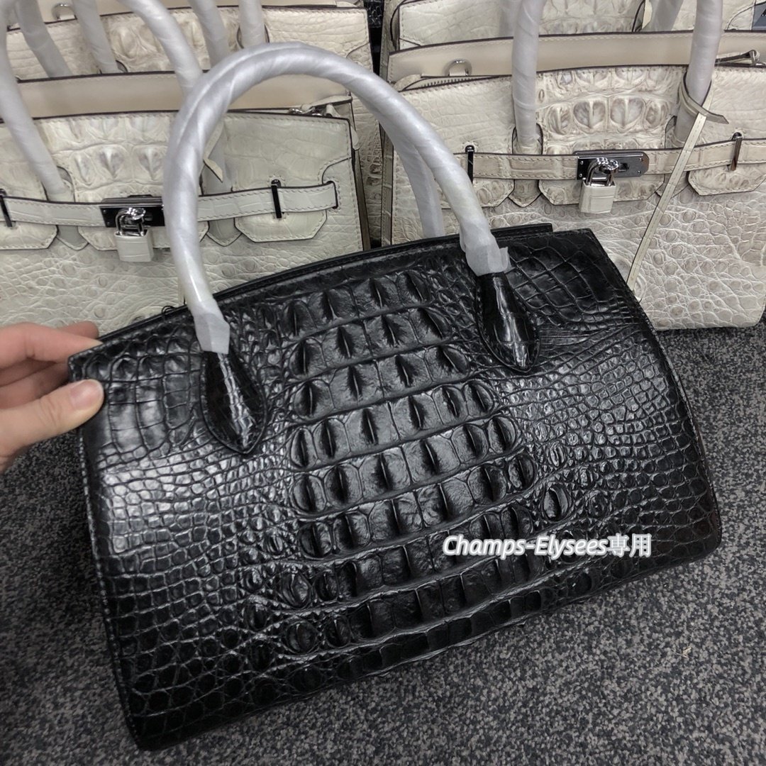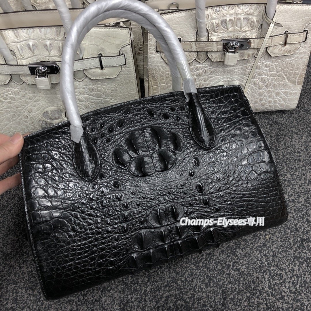 貴重品 特大コブ 本物鰐革 水染 黒 クロコダイルレザー 大容量 レディースバッグ ハンドバッグ トートバッグ