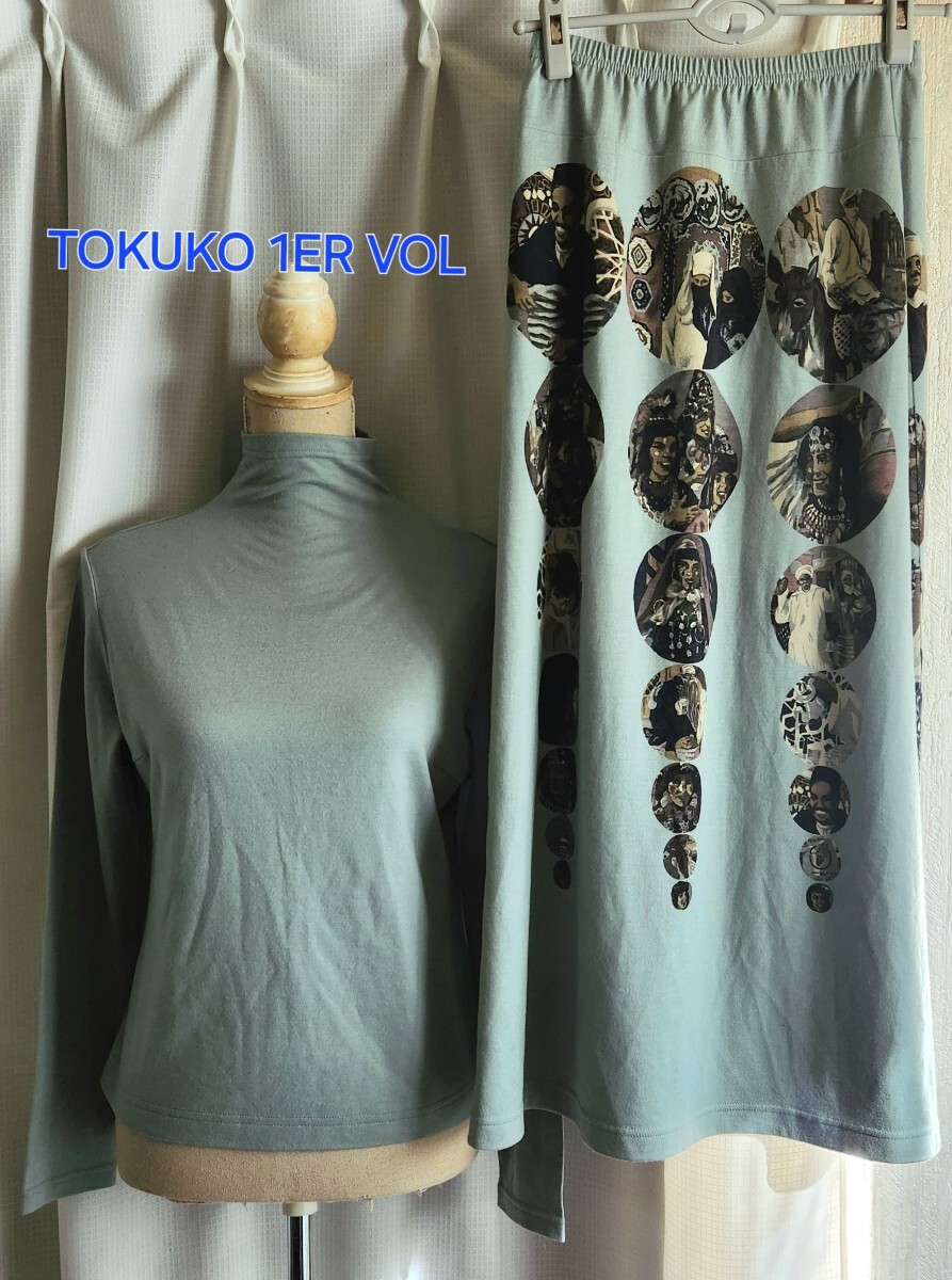 大変美品 TOKUKO 1ER VOL 日本製 ウールニットセットアップ スカート グリーン トクコプルミエヴォル ハイネック