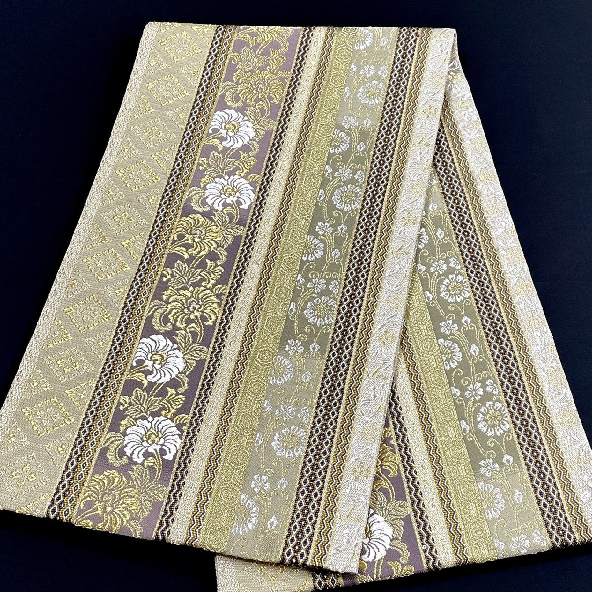 着物月花 品のある花 袋帯 六通柄 正絹 金銀糸 ob7627