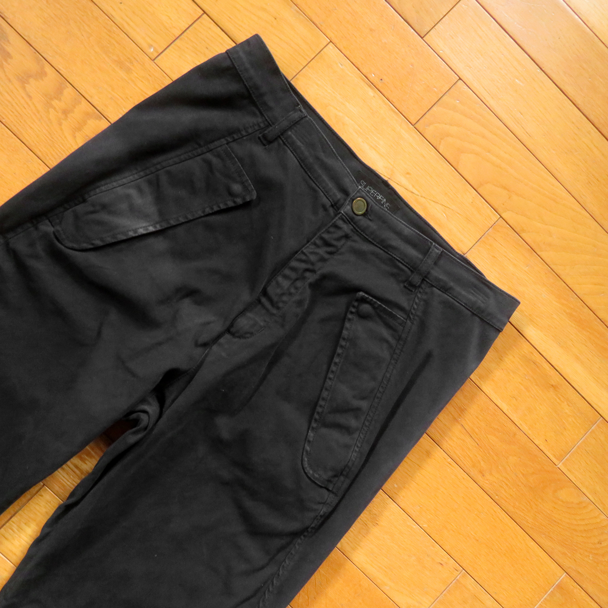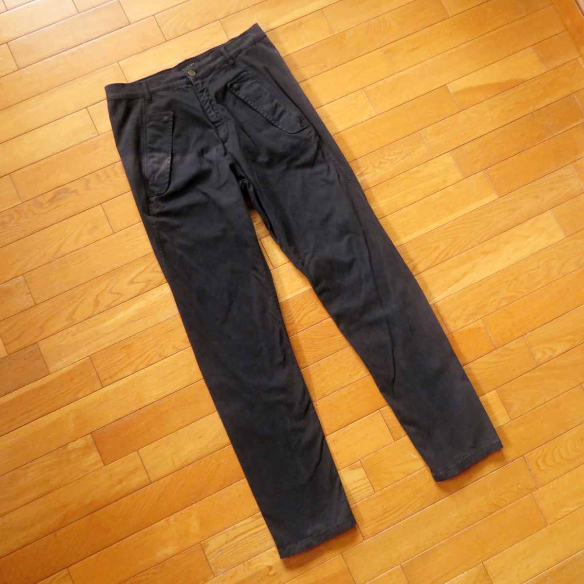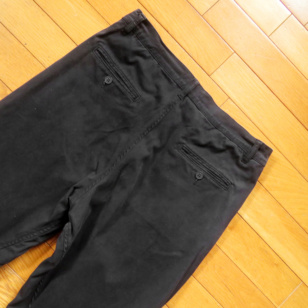 Superfineの「Hoodlum」 ストレッチ パンツ ブラック W31 です。 チノパンのシルエットに少し変形のポケットが付いた、スーパーファインのパンツです。 ワークパンツ、チノパンでしょうか。 膝裏に、切り返しもあります。 イタリア製で生地は柔らかめ、ストレッチも効いていて履きやすくなっています。 色は、ブラックです。 右前側あたりに、不思議な感じに色が抜けたようなあとがあります。 いかがでしょうか。 【コンディション】 使用感が普通にありますが、大きな汚れ、着用に支障があるようなダメージ等はありません。 十分着用していただます。 ★前側に色が抜けたようなあとがあります。最後の方の写真を参考にしてみてください。 ------------------------------------------- 【表記】サイズ 31 【モデル】 Hoodlum 【実寸】 平置き ウエスト 39.5cm×2(79cm) (平置き後ろ直線測定) 股上 32cm 股下 80cm 裾幅 17cm もも幅 29cm (股下付け根より10cm程下を水平に計測) 前後程度になります。※平置き、素人採寸になりますので、多少の誤差はお許し下さい。 ------------------------------------------- 【色】 ブラック 【素材】 コットン98%ポリウレタン2% 【フロント】 ジッパー 【生産国】 イタリア製 【USED品】 ------------------------------------------- ◆ 他にもいろいろデニムなど出品していますので、よかったら見ていってください。 ◆ もちろん同梱もできますので、お気軽にご質問ください。 ◆ 気持ちの良いお取引を目指していますので、ご質問は事前にお気軽にどうぞ。 終了直前だとお答えできない場合があります。どうぞよろしくお願い致します。 | ||||