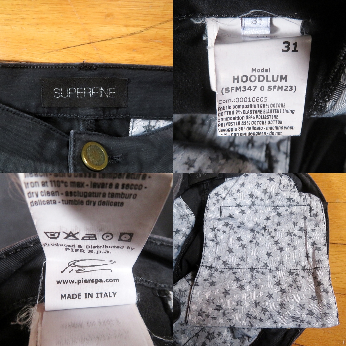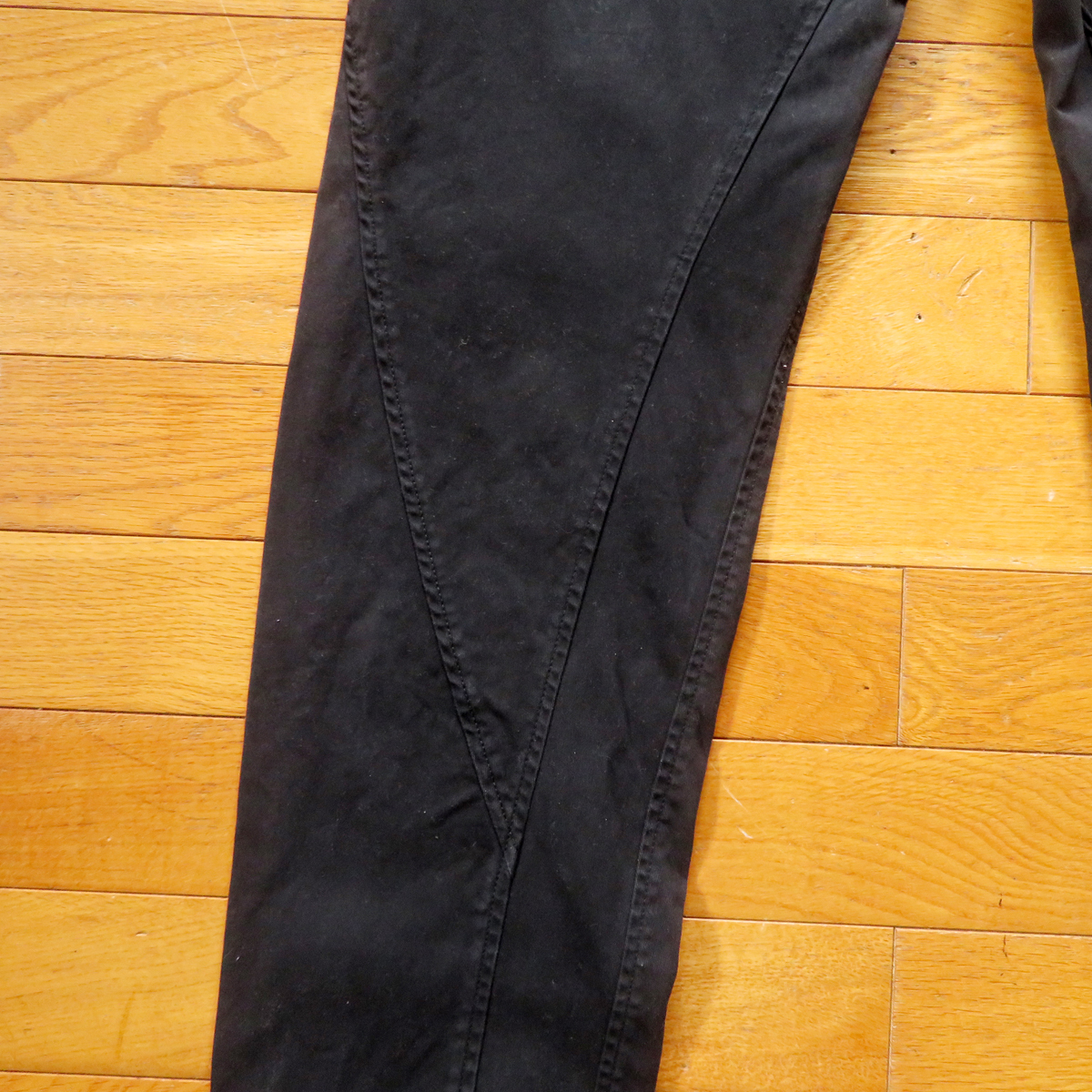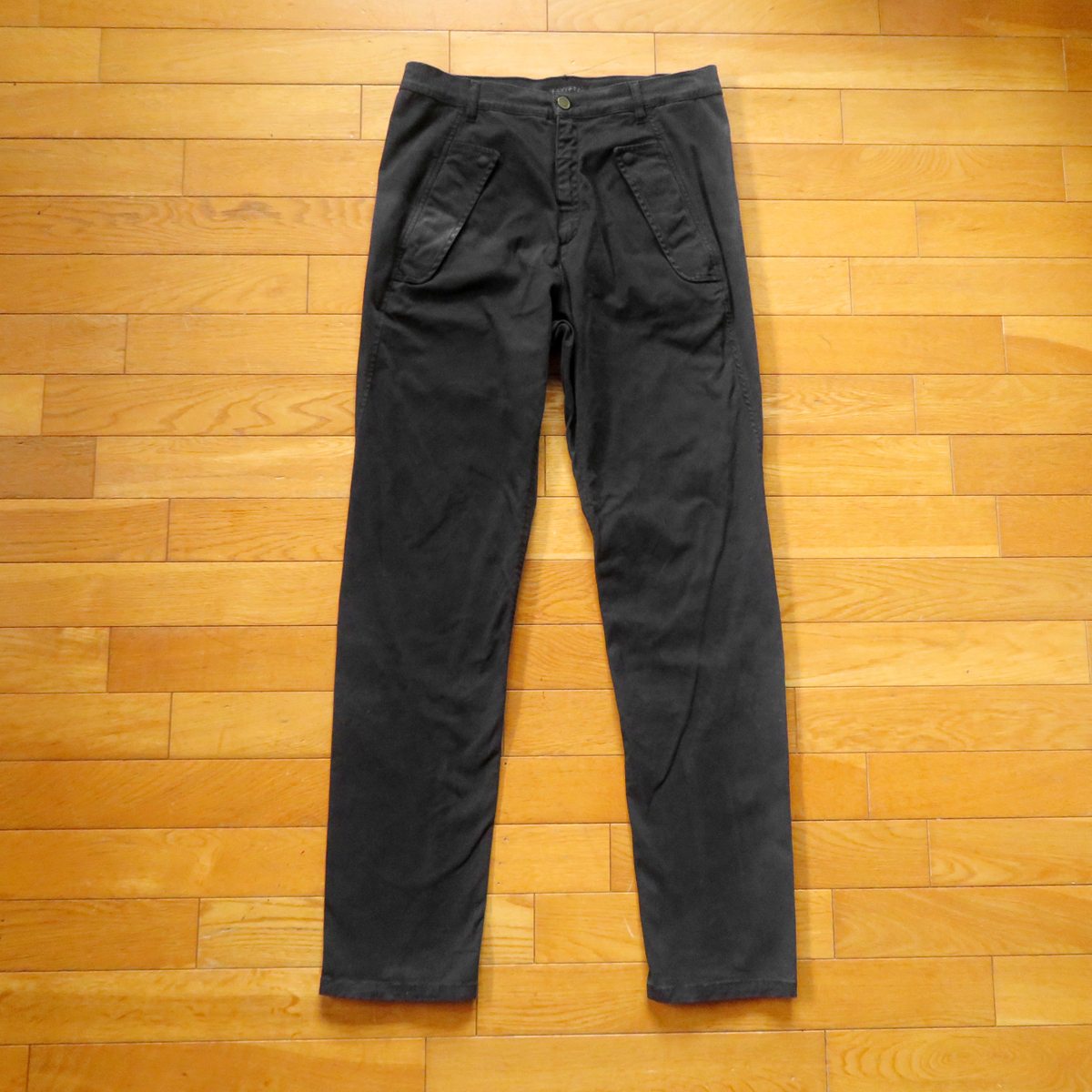 Superfineの「Hoodlum」 ストレッチ パンツ ブラック W31 です。 チノパンのシルエットに少し変形のポケットが付いた、スーパーファインのパンツです。 ワークパンツ、チノパンでしょうか。 膝裏に、切り返しもあります。 イタリア製で生地は柔らかめ、ストレッチも効いていて履きやすくなっています。 色は、ブラックです。 右前側あたりに、不思議な感じに色が抜けたようなあとがあります。 いかがでしょうか。 【コンディション】 使用感が普通にありますが、大きな汚れ、着用に支障があるようなダメージ等はありません。 十分着用していただます。 ★前側に色が抜けたようなあとがあります。最後の方の写真を参考にしてみてください。 ------------------------------------------- 【表記】サイズ 31 【モデル】 Hoodlum 【実寸】 平置き ウエスト 39.5cm×2(79cm) (平置き後ろ直線測定) 股上 32cm 股下 80cm 裾幅 17cm もも幅 29cm (股下付け根より10cm程下を水平に計測) 前後程度になります。※平置き、素人採寸になりますので、多少の誤差はお許し下さい。 ------------------------------------------- 【色】 ブラック 【素材】 コットン98%ポリウレタン2% 【フロント】 ジッパー 【生産国】 イタリア製 【USED品】 ------------------------------------------- ◆ 他にもいろいろデニムなど出品していますので、よかったら見ていってください。 ◆ もちろん同梱もできますので、お気軽にご質問ください。 ◆ 気持ちの良いお取引を目指していますので、ご質問は事前にお気軽にどうぞ。 終了直前だとお答えできない場合があります。どうぞよろしくお願い致します。 | ||||