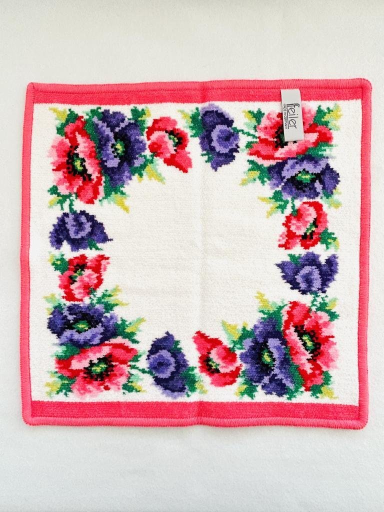 新品未使用品【送料込】FEILER フェイラー タオルハンカチ ポピーズピンク 29×29 ピンク パープル グリーン他 小物 6460376