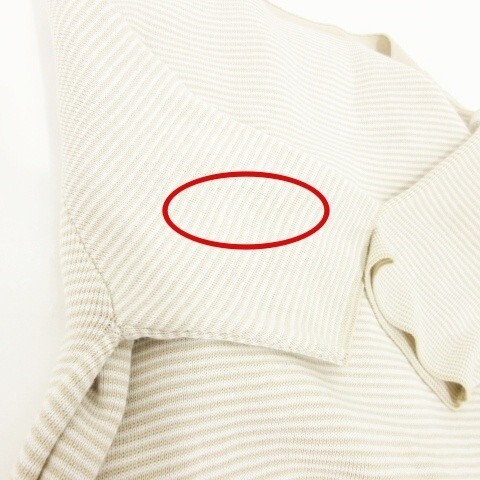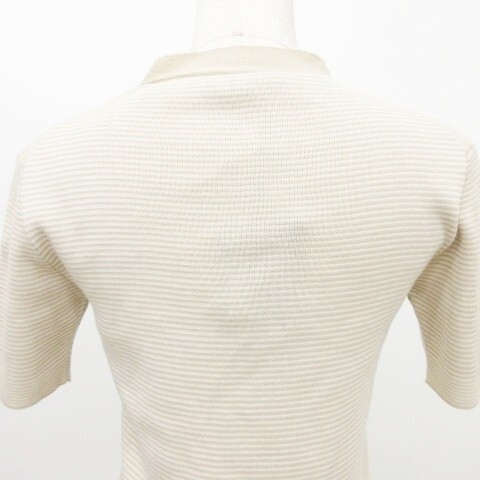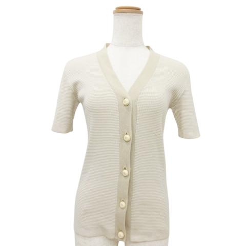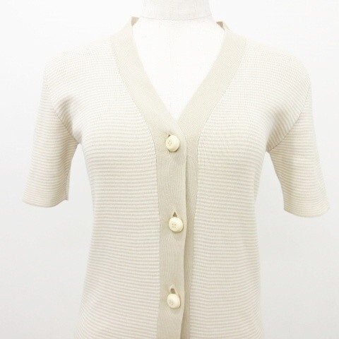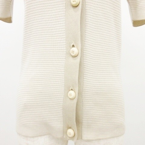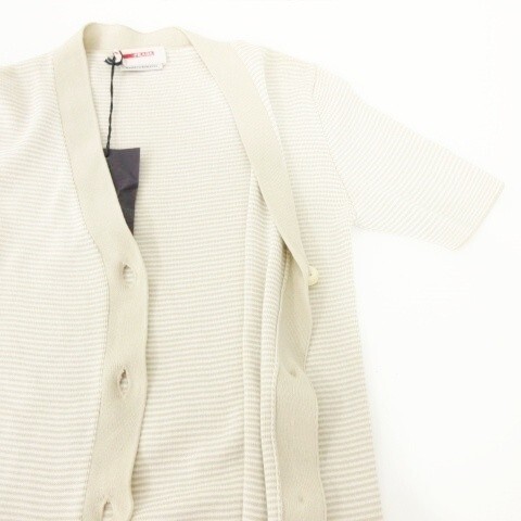 プラダ PRADA 美品 タグ付き ボーダー 半袖 カーディガン ニット 40 約Mサイズ ベージュ IBO58 レディース