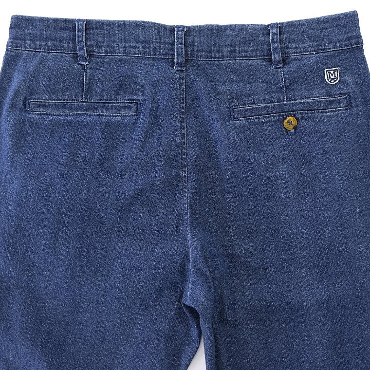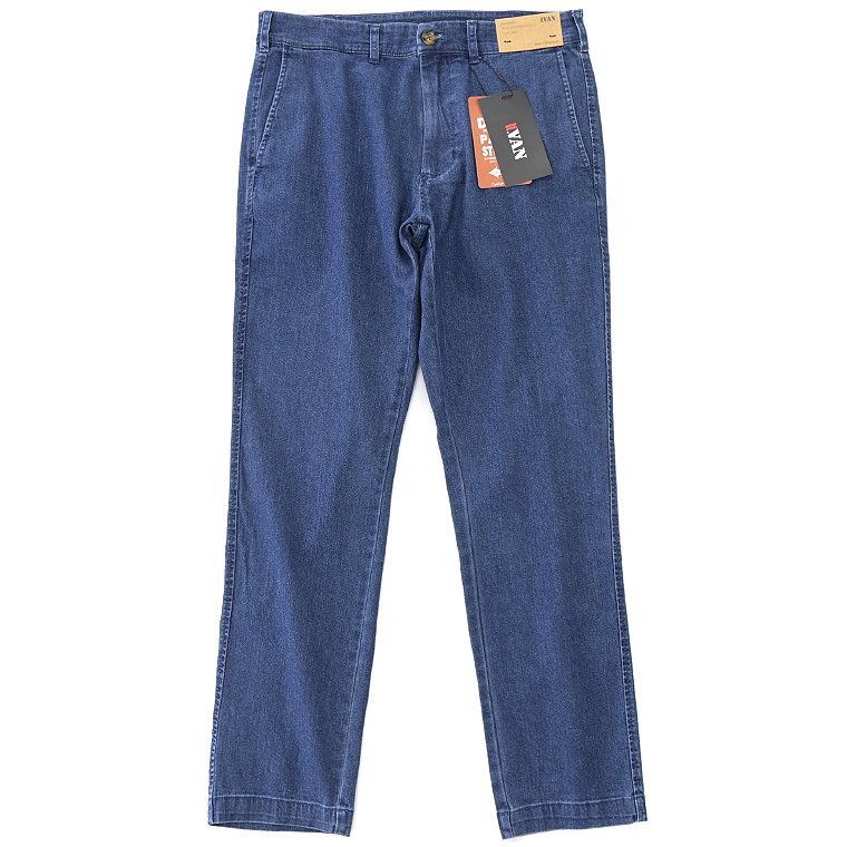 ウエスト88 ※商品に記載されたサイズ・寸法です※ ウエスト88cm 股上28.5cm 股下78cm 裾幅19.5cm 股下10cm部分の腿幅29.5cm 綿85% ポリエステル13% ポリウレタン2% BLUE |