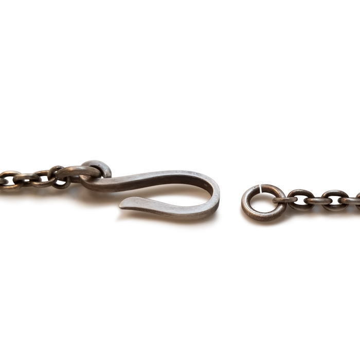 | ◆商品詳細◆ 太さ3.4mmのあずきチェーンをセットしたネイティブホライズンのS字フックチェーン。 強めに入れた燻しとマットな仕上げが特徴で、すでに使い込んだペンダントに組み合わせる場合この黒さがバランスよく合わせられるのでオススメです。 フックとチェーンをつなぐ丸カンはペンチで開閉できるのでペンダントの付け替えも可能です。 ブランド名 native horizon / ネイティブホライズン 商品素材 silver925 商品寸法 フックサイズ24mm x 20mm チェーン太さ3.4mm 全長 60センチ 付属品 巾着ポーチ ボックス |