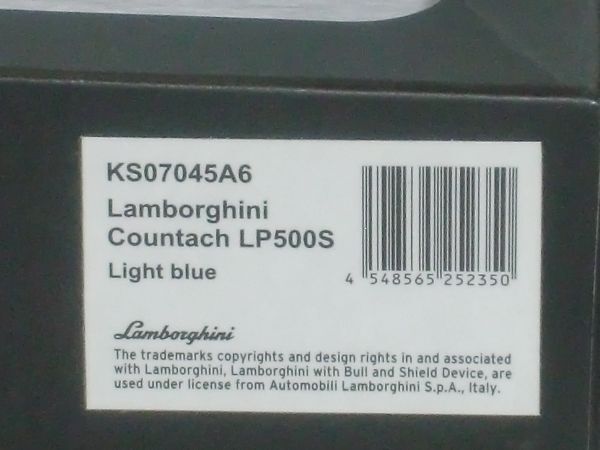 ☆1/64程度 京商 Lamborghini Countach LP500S ライトブルーです。箱に少し痛みなどがありますので、ご了承の上入札下さい。商品の状況は写真でご判断の 上、ノ-クレ-ム・ノ-リタ-ンでお願いします。保証はできませんが、定形外郵便での発送も可能です。