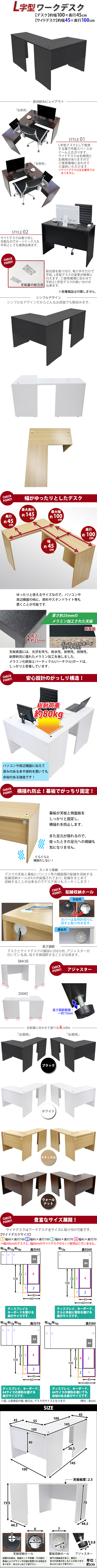 | 商品紹介 | ■作業スペースを広く確保出来る、L字型ワークデスクです。 ■サイドデスクの幅が約45cmのタイプです。 ■会議室や事務所等、オフィス家具として様々なシーンでお使いいただけます。 ■天板には、メラミン加工を施しています。 ■幕板が天板と側面板をがっちりと固定!横揺れを防止します。 ■ネジ穴隠しのシール付き。(サイドデスクのみ付属) ■デスクの天板と幕板に配線収納ホールが2カ所ずつ備わっています。 ■アジャスターで高さの調節が可能です。(高さ調節範囲〜約15mm) ※こちらの商品は、組立て式です。組立てにはプラスドライバーが必要です。お客様でご用意ください。 ※組立図が付属します。 ※サイドデスクの取り付けはデスクの右側専用となります。 ■材質:パーティクル(パーチクル)ボード(メラミン加工)(本体、サイドデスク)、プラスチック(アジャスター、配線収納ホール) ■重量:約35kg(デスク:約19kg、サイドデスク:約16kg) ■総耐荷重:約80kg ●新品商品ではありますが、輸入商品の為、多少の擦り傷などがある場合がございますので、ご納得の上ご購入下さいませ。 ●ご購入後、お客様ご都合によるご返品、ご返金等は一切お受け致しておりません。 ●本商品を使用した際に発生したトラブル、事故につきまして、当社は一切の責任を負いません。ご使用に関しましては、全て自己責任にてお願い致します。 ※カラーはブラックとなります。 |