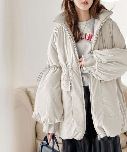 参考商品名:この冬最旬。スタンド衿ドロストデザイン袖ボリューム中綿オーバーサイズブルゾン