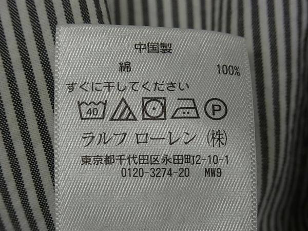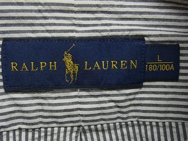 ■美品■ RALPH LAUREN ラルフローレン コットン ストライプ Yシャツ 半袖 トップス サイズ L 洋服 ブラック系×ホワイト系 DI7164