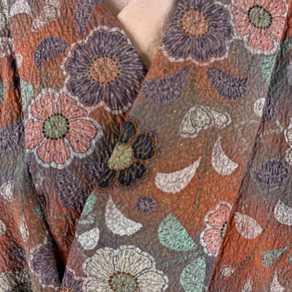 | 和装コートのひとつで、普段着などにも気軽に羽織ることができる道中着でございます。 外出時に着物の上に塵除けや防寒用として羽織ります。 ※身丈・裄丈の縫込みの長さは測っておりません。 表地所々に金彩の変色がございます。 裏地所々にシワがございます。 リユース品としては良い状態で、まだまだご活用頂けると思われます。 ※なお、厳しく商品の状態確認を行っておりますが、記載の汚れ以外にも見落とし箇所がある可能性がある旨ご了承いただけますと幸いです。 沢山の商品の中からご覧いただき誠にありがとうございます。 【OZ1】 |