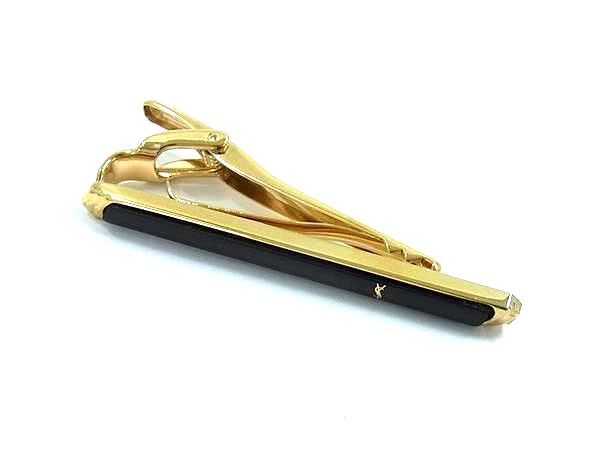 ■美品■ YVESSAINTLAURENT イヴサンローラン タイクリップ ネクタイピン ビジネス 紳士 メンズ ゴールド系×ブラック系 DK8198