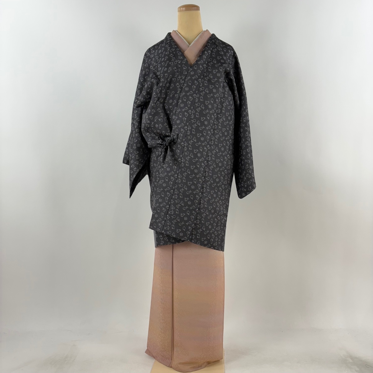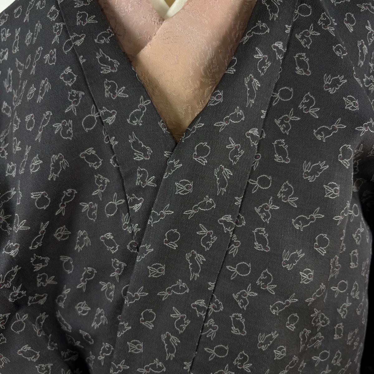 | 道中着 美品 秀品 和装コート お召地 兎 灰色 身丈93 裄丈66.5 M 正絹 【中古】 |