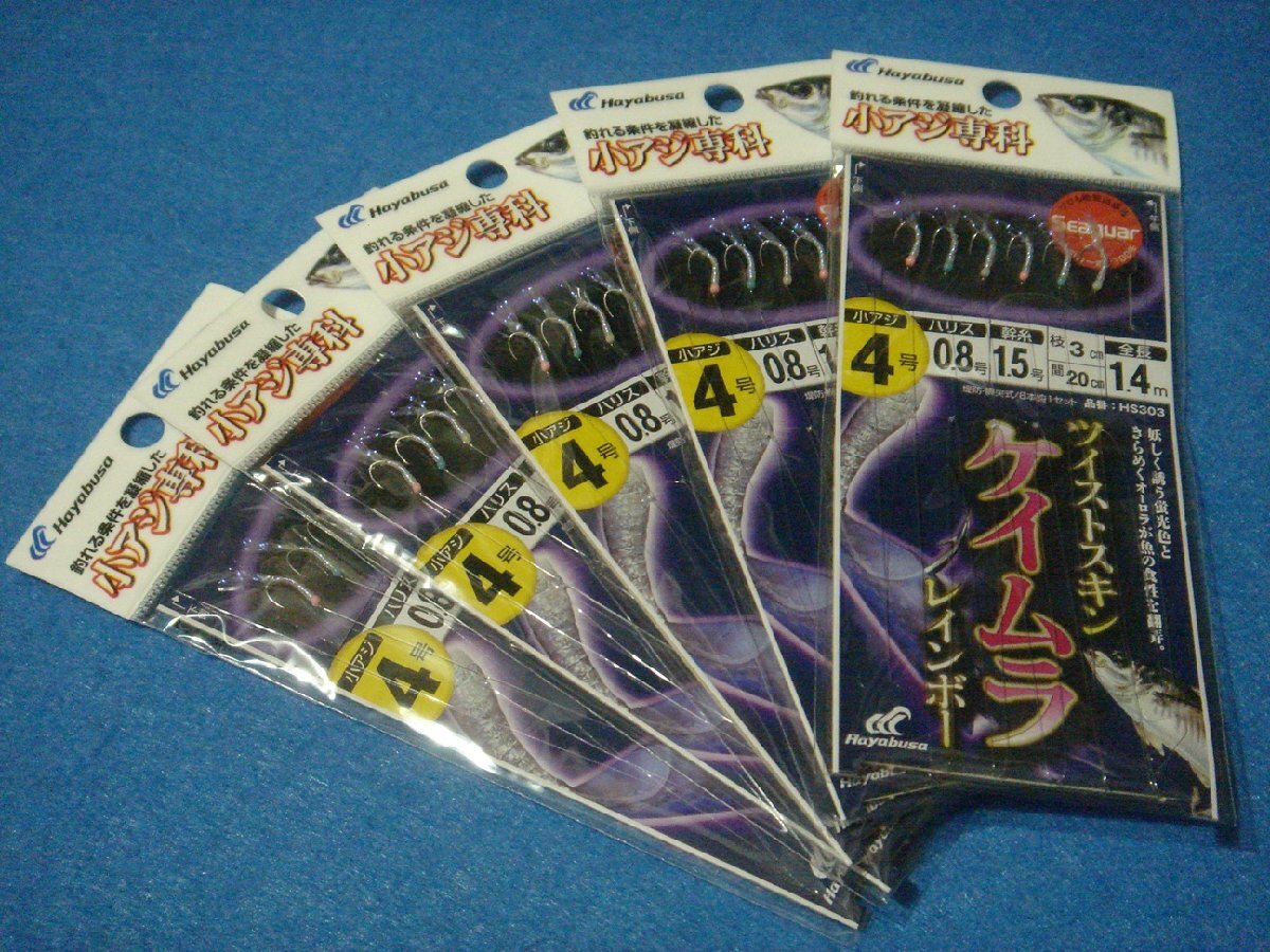 「ハヤブサ サビキ 小アジ専科 ツイストケイムラレインボー 4号」の5枚セットです。