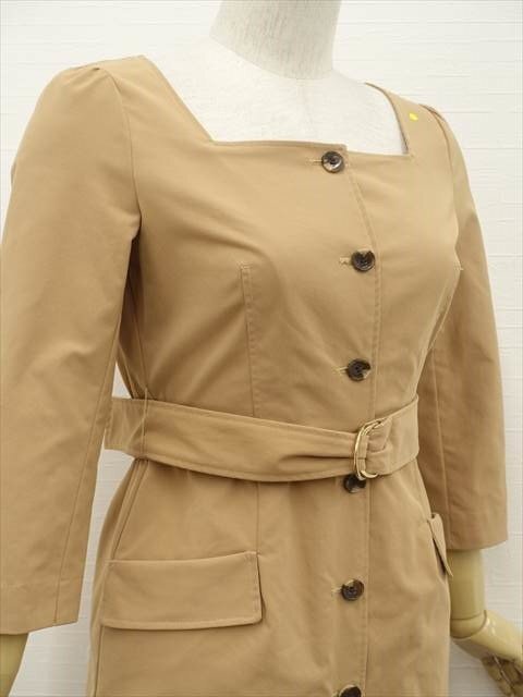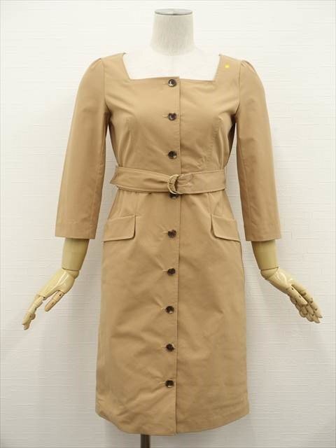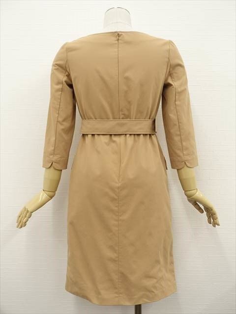 ひざ丈 七分袖 洗えるワンピース 1 キャメル