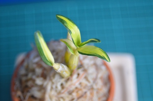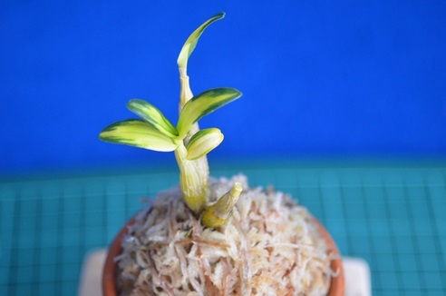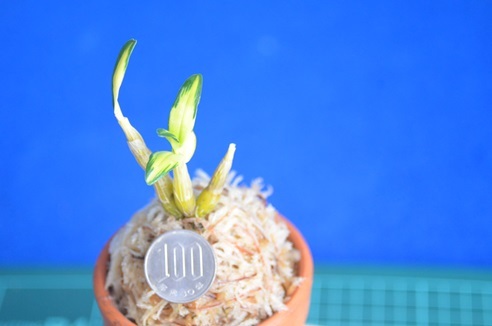 長生蘭の極黄流の中透け飴矢品種です。わが家で変わったもので、極めて少ない確率から極黄流から発生しました。芸が3年続きましたので出品しました。茎はほぼ飴色です。写真で判断いただき入札いただければ幸いです。