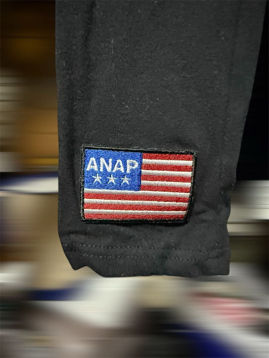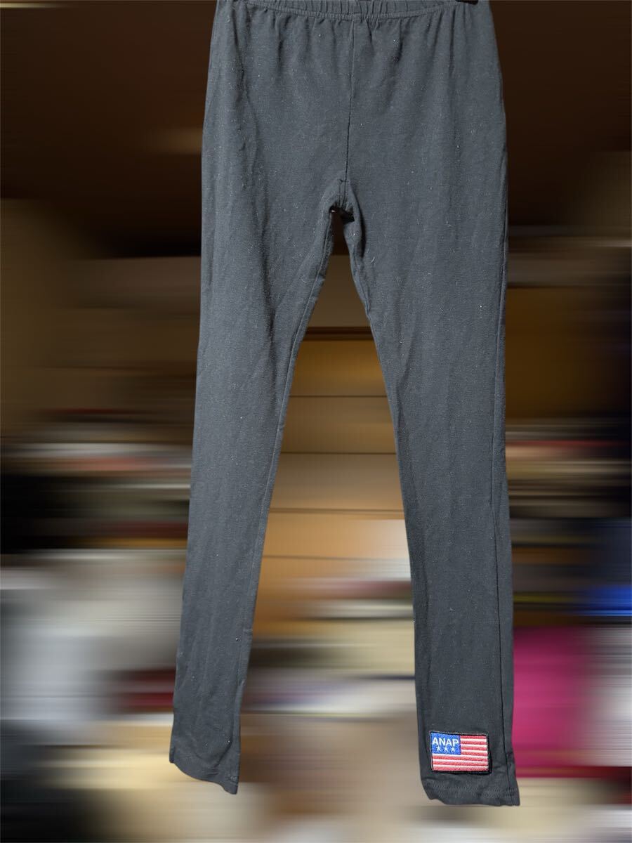 アメリカ国旗のパッチが特徴的な黒のレギンス。