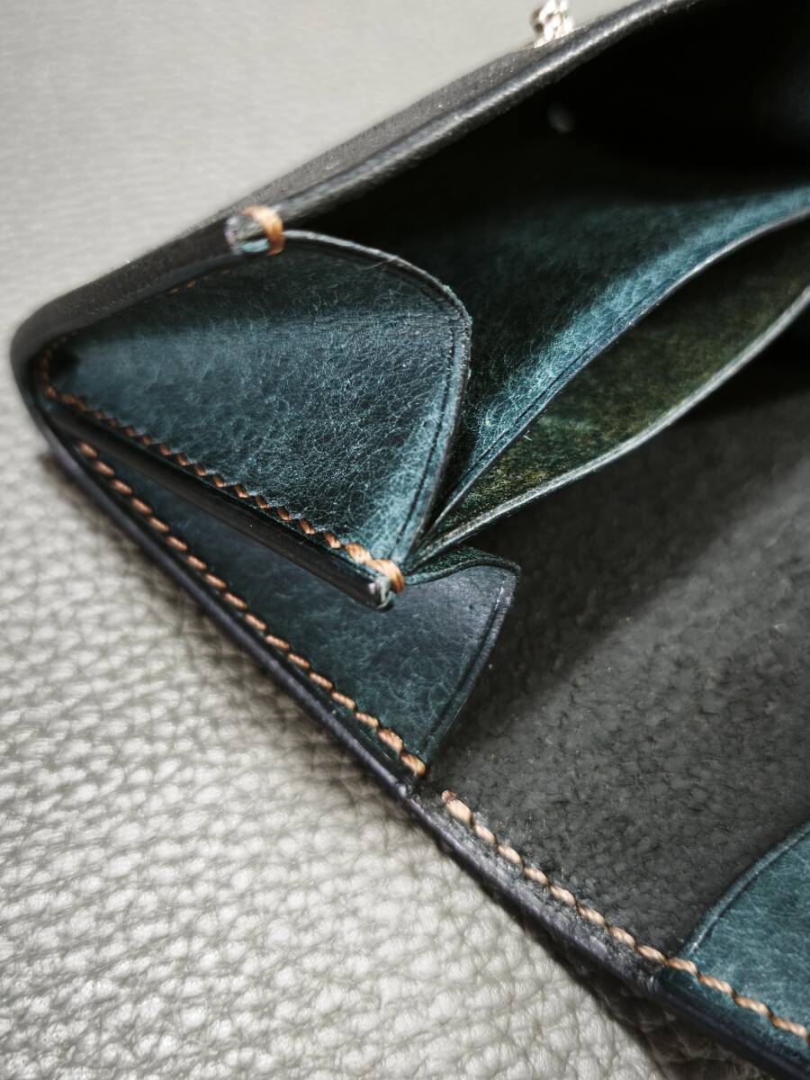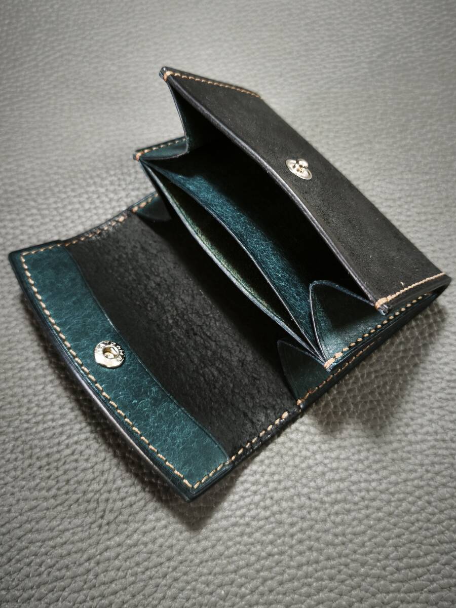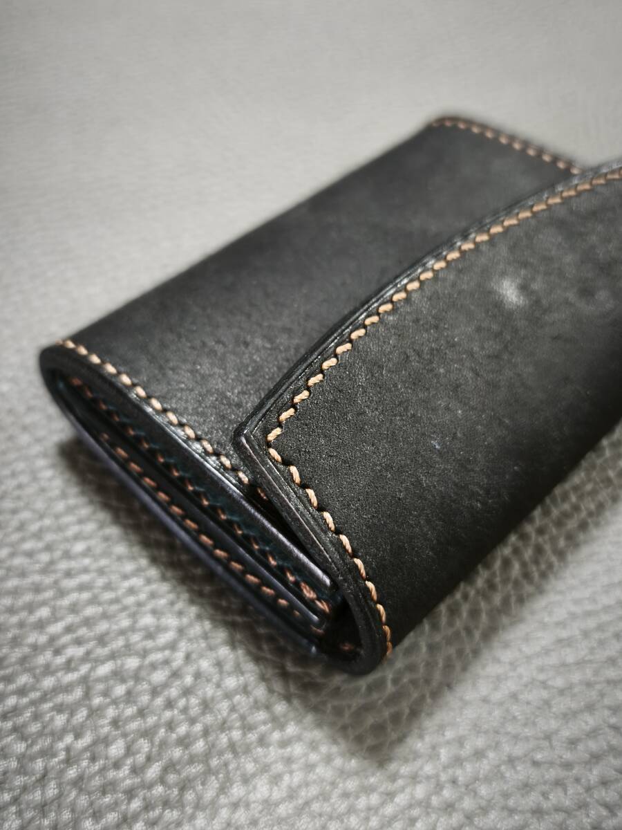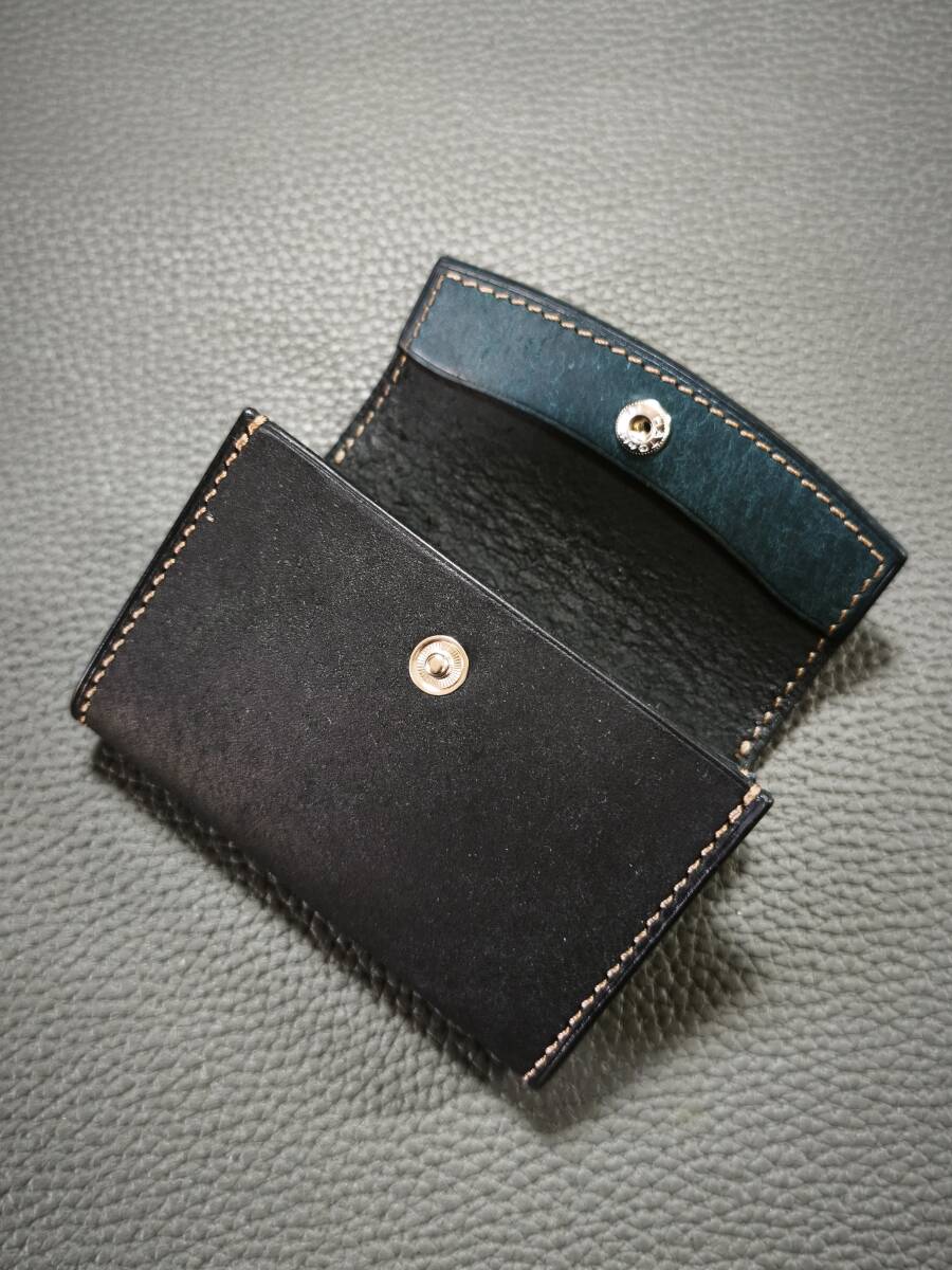 | RiDo Leather【プエブロ】フラップウォレット ミニ★ブラック×ペトローリオ ミニ財布 コンパクト財布 イタリアンレザー |