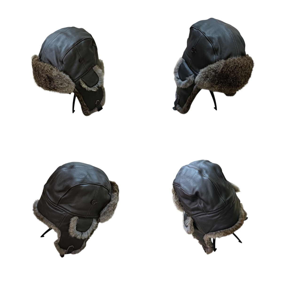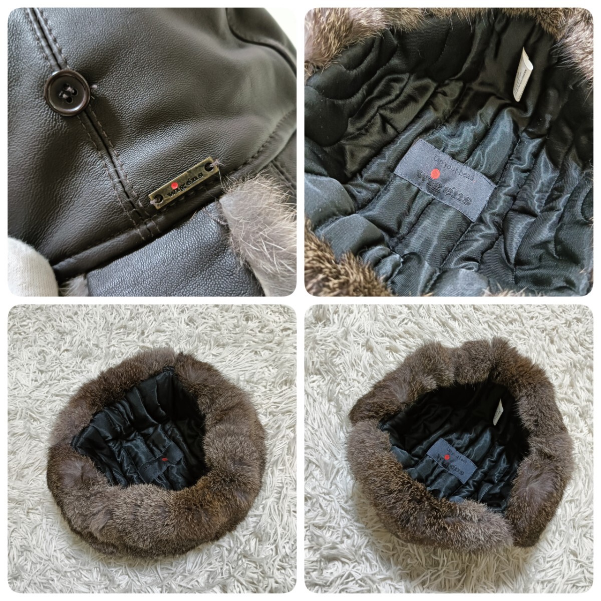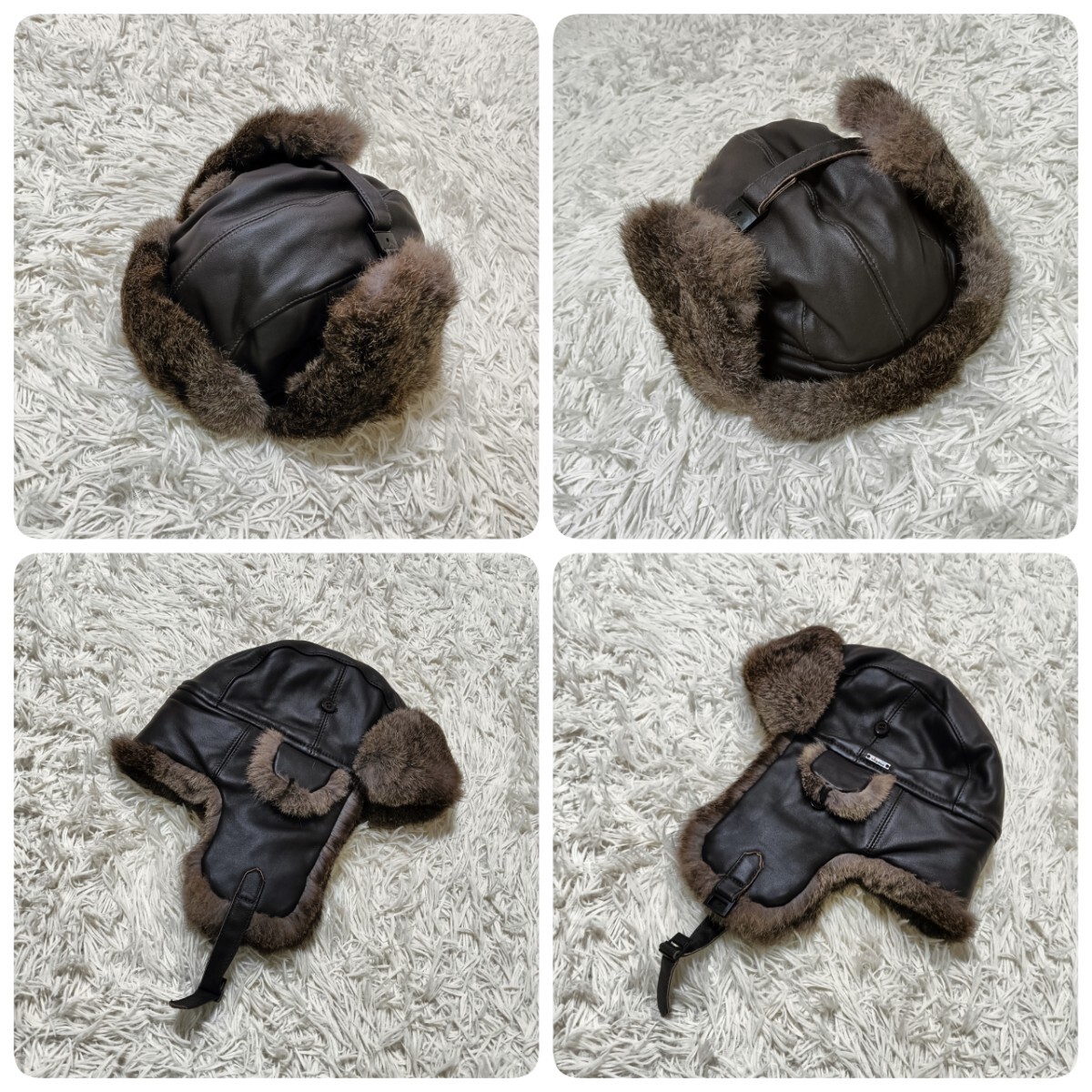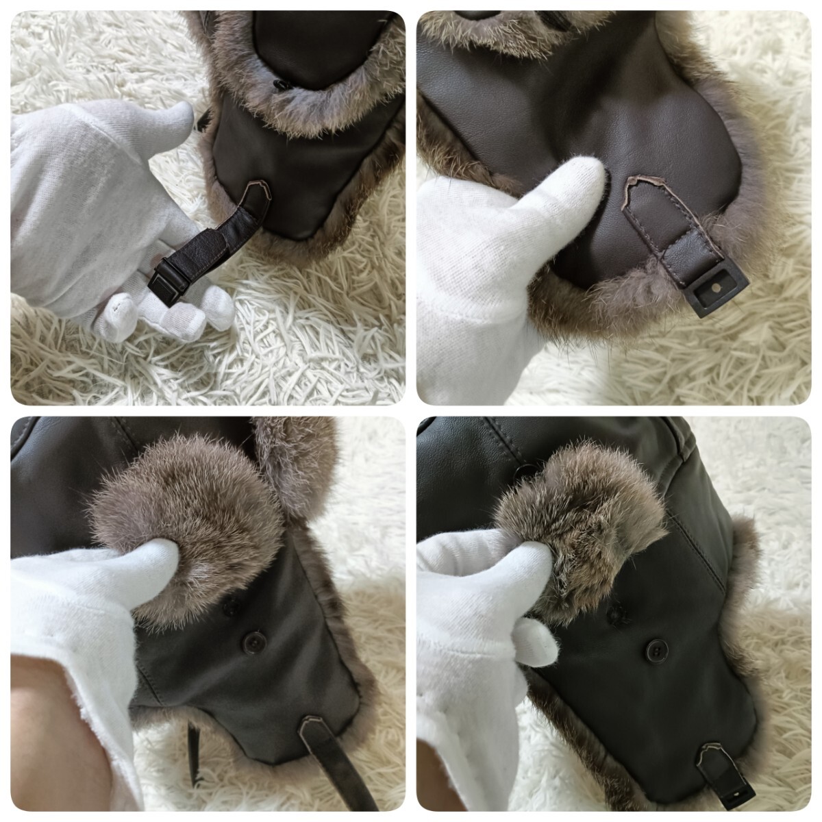 ・仕様や特徴など:ゴートレザー&ラビットファーによるラグジュアリーフライトキャップ,イヤーフラップの上げ下げにより3wayでの着用が可能,サイド(耳当て部分)に通気口を作ることによって着用時の蒸れ防止&軽減仕様etc.