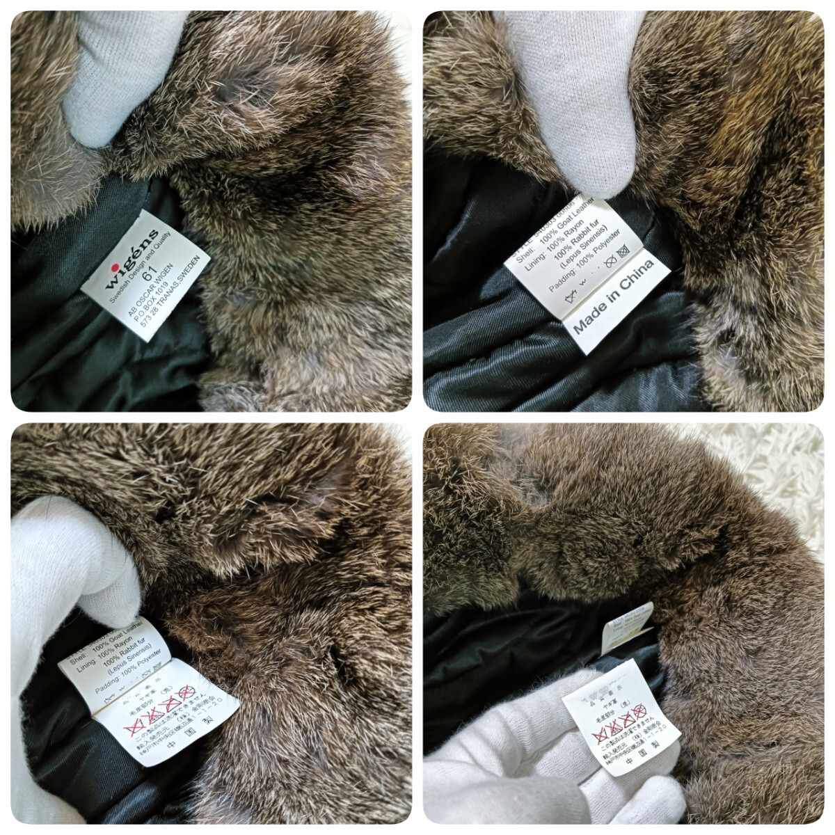 美品☆wigens ヴィゲーンズ パイロットキャップ フライトキャップ ボンバーキャップ ゴートレザー やぎ革 ラビットファー 兎 ダークブラウン グレージュ メンズ レディース ユニセックス カジュアル スウェーデン 老舗 帽子 古着 USED