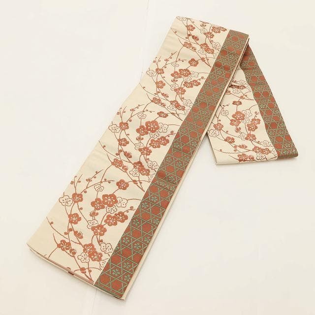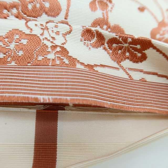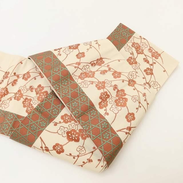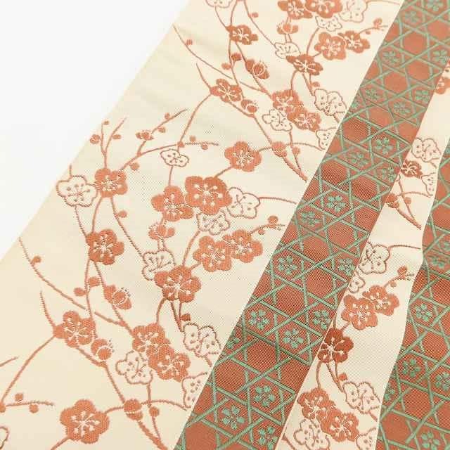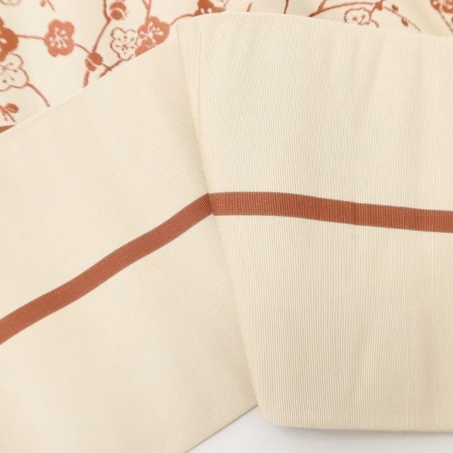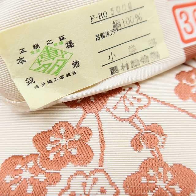 【ゆめsaku】美品 本場筑前博多織 証紙付き 正絹 浴衣 着物“あま~くレトロな梅”半幅小袋帯 K-75