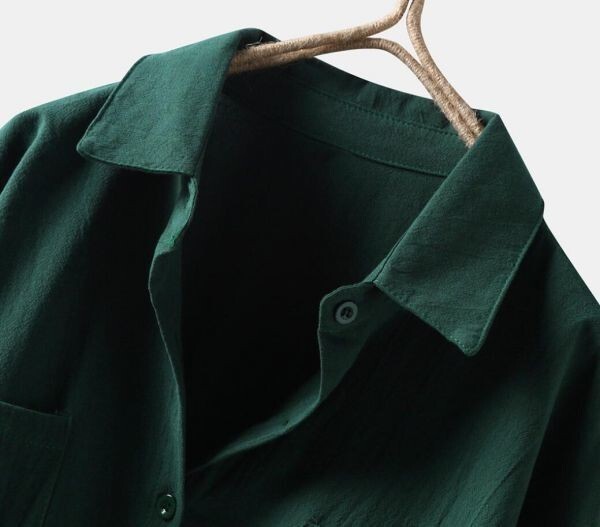 ゆったり 秋 冬 S~2XLサイズ 秋 ナチュラル 素敵な 純色 無地 綿麻 大きいサイズ 長袖 シャツチュニック 緑