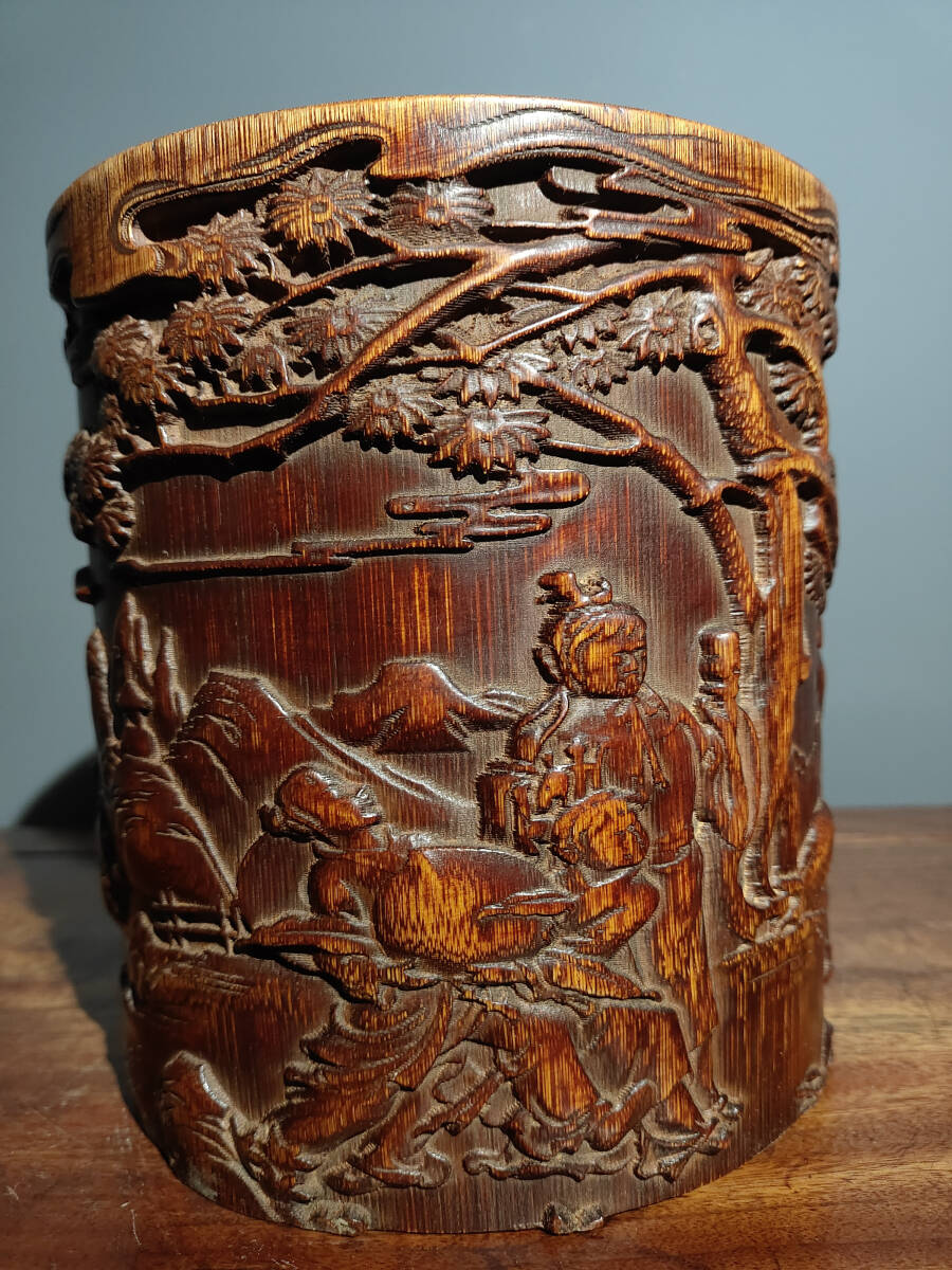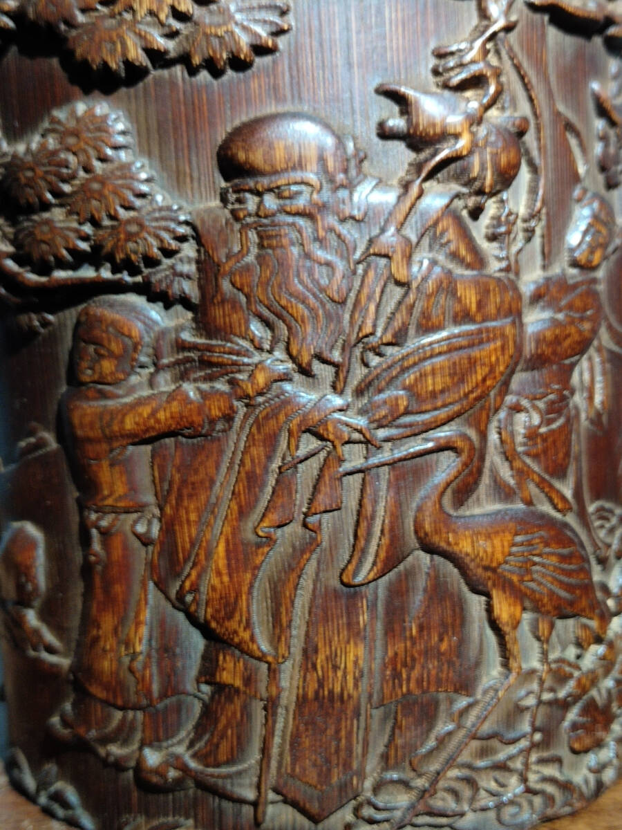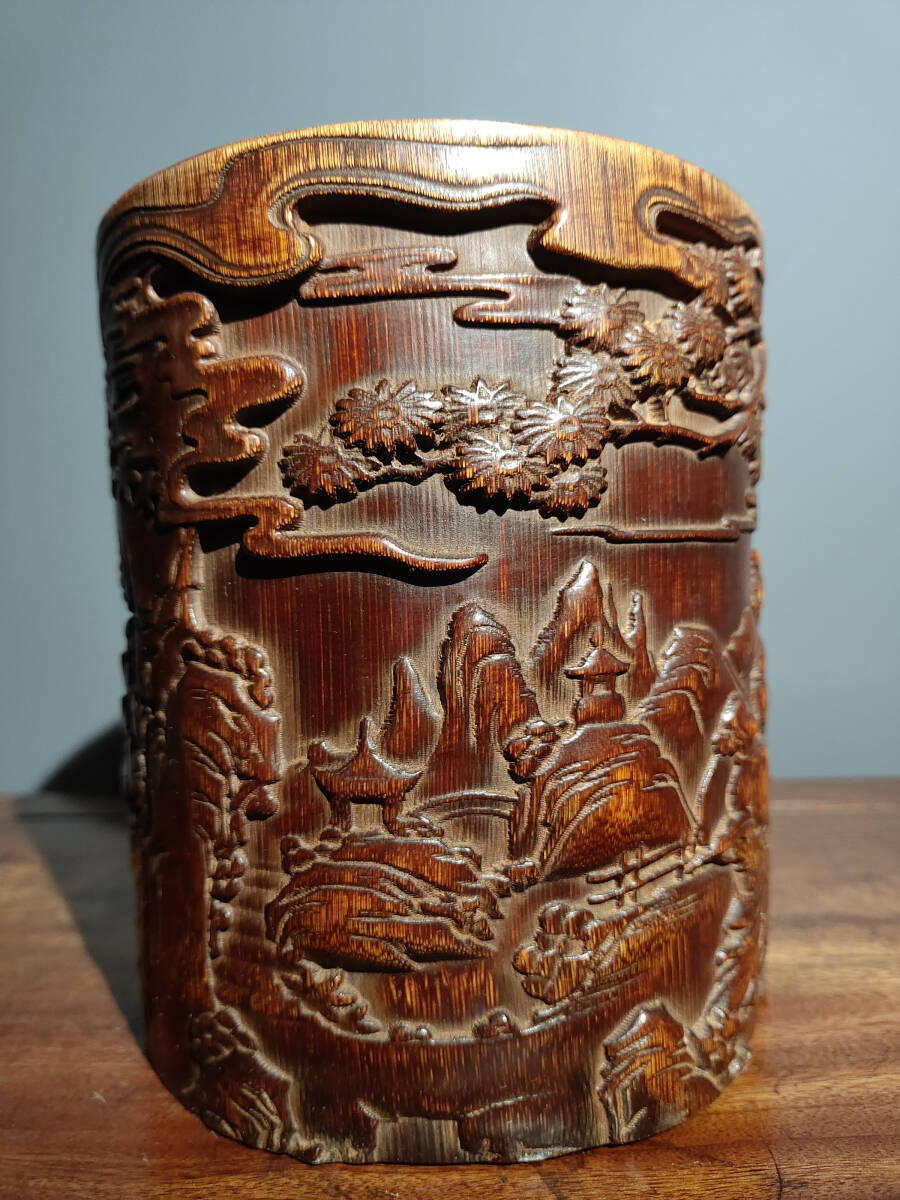 | 【蔵友館蔵品・竹材・細密彫・童子獻寿紋・筆筒・文房具・書道品・置物・賞物】・古董品・中国古玩・時代物・希少珍品・中国時代美術111168 |