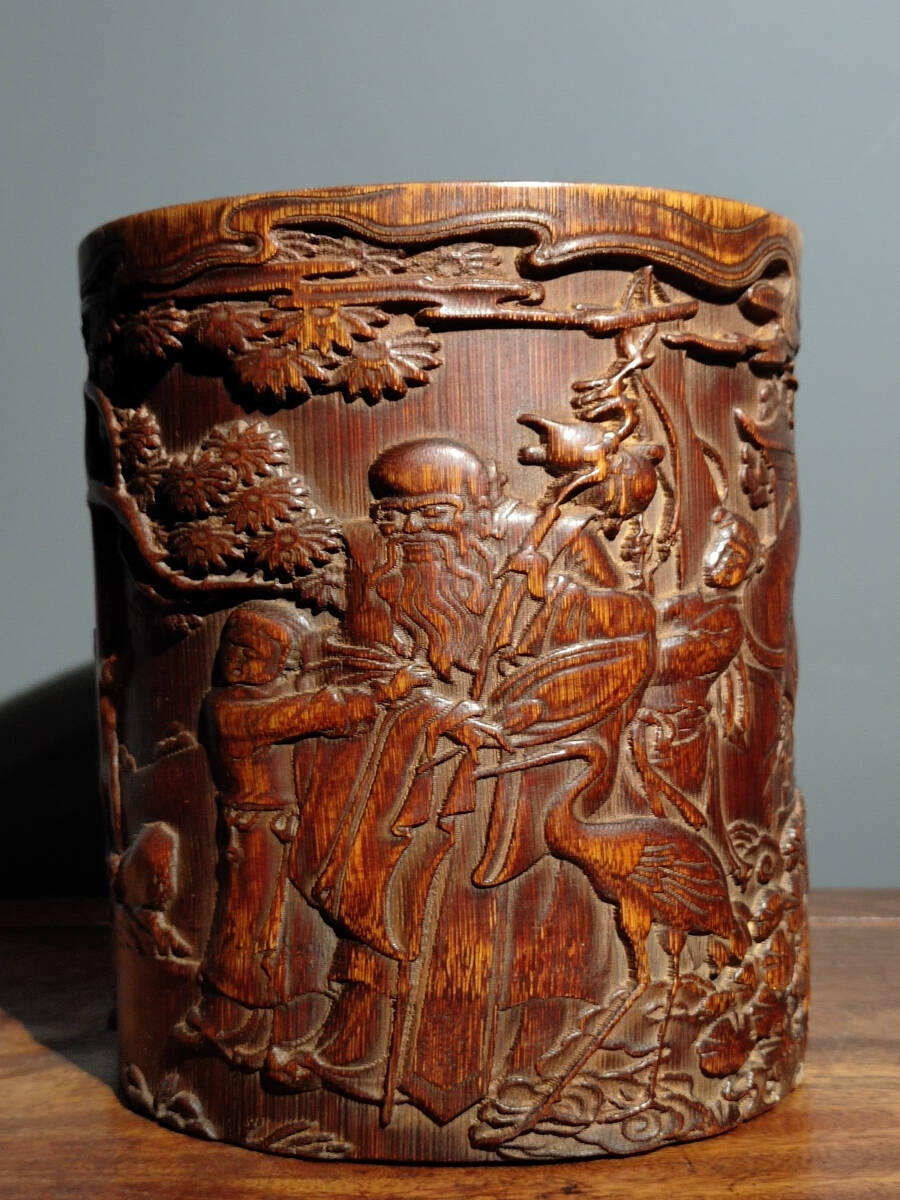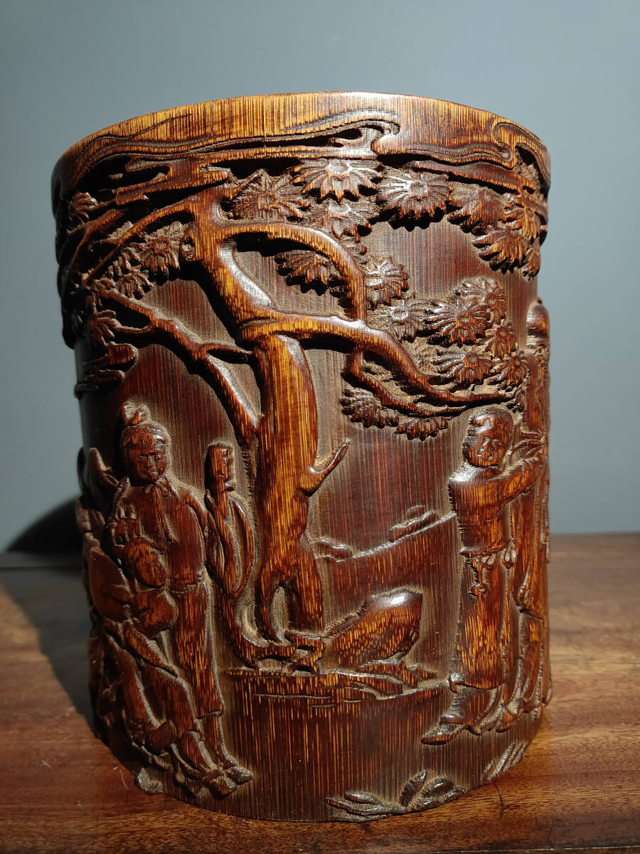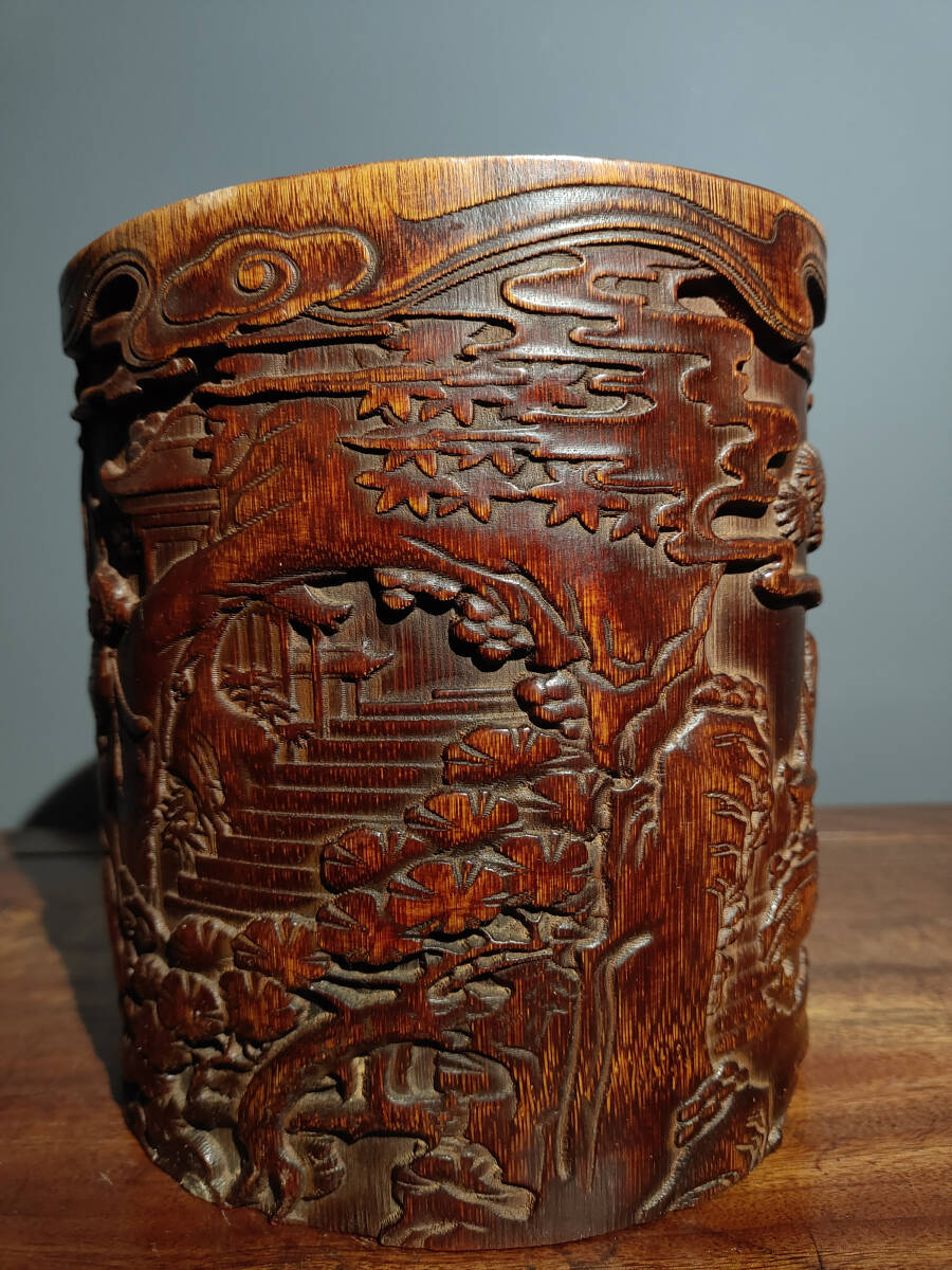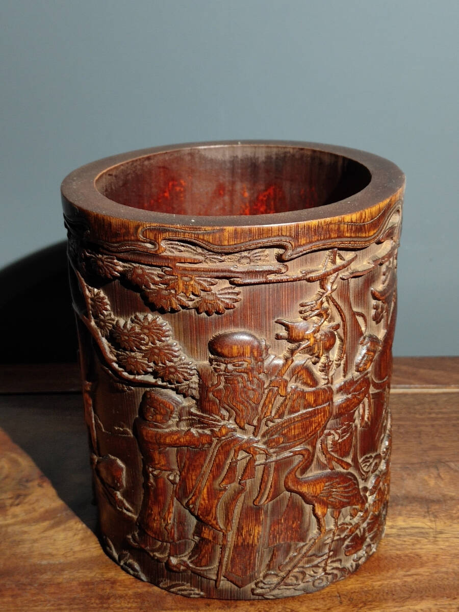 | 【蔵友館蔵品・竹材・細密彫・童子獻寿紋・筆筒・文房具・書道品・置物・賞物】・古董品・中国古玩・時代物・希少珍品・中国時代美術111168 |
