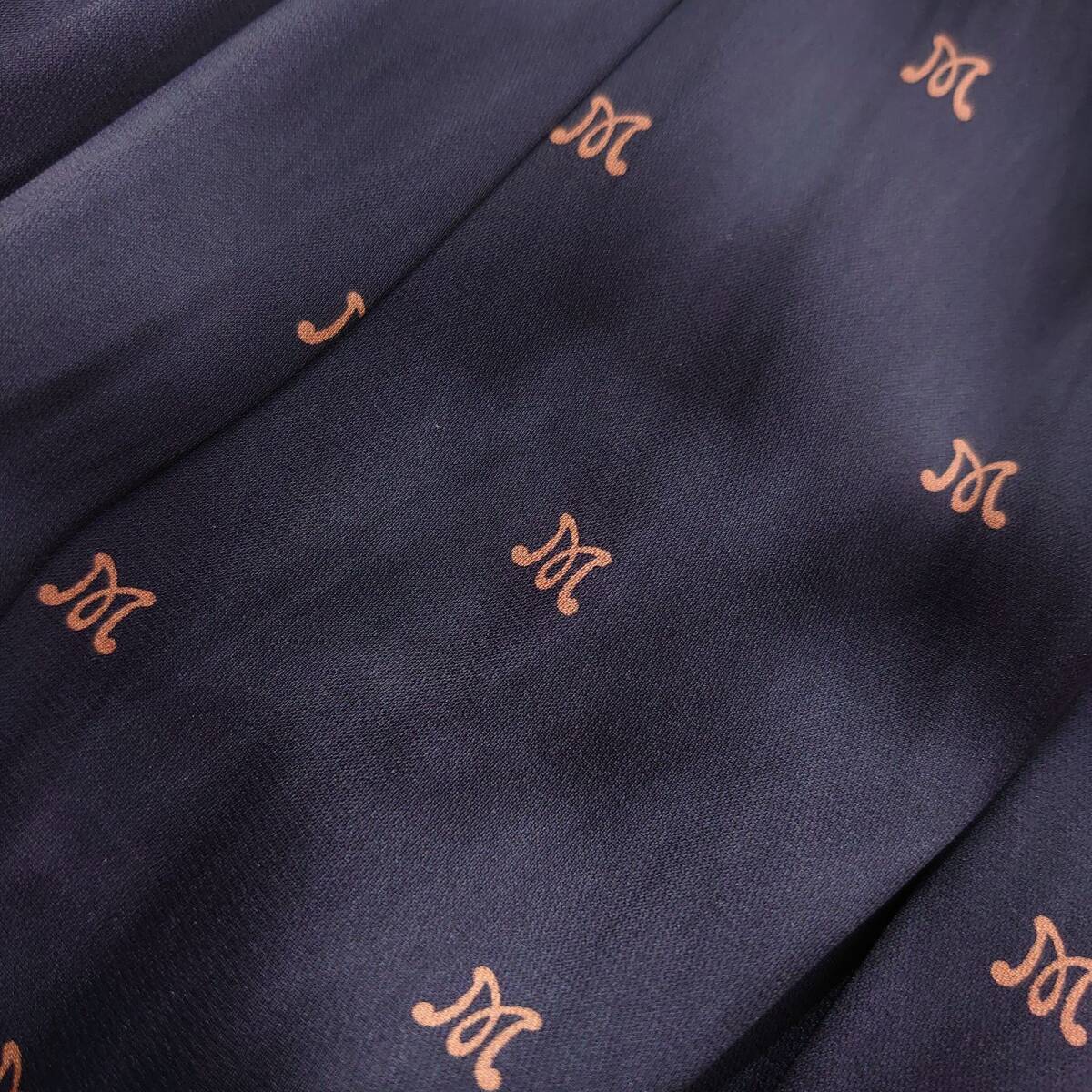 ・上品な光沢としなやかで膨らみのあるドレープ性が特徴のサテン生地に、ブランドアイコンのMモチーフをドットのように飛ばしたデザインです