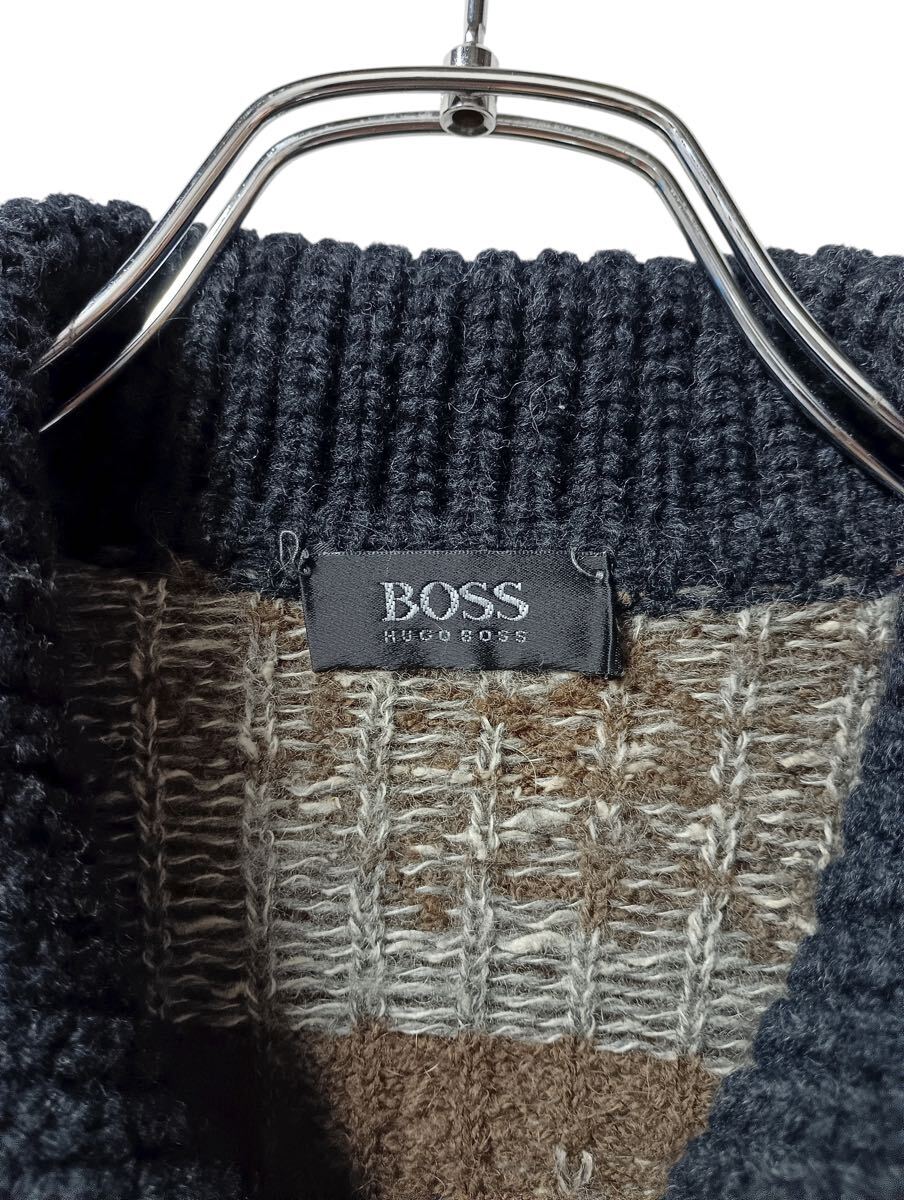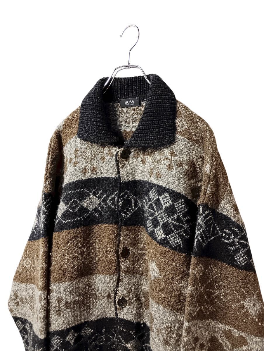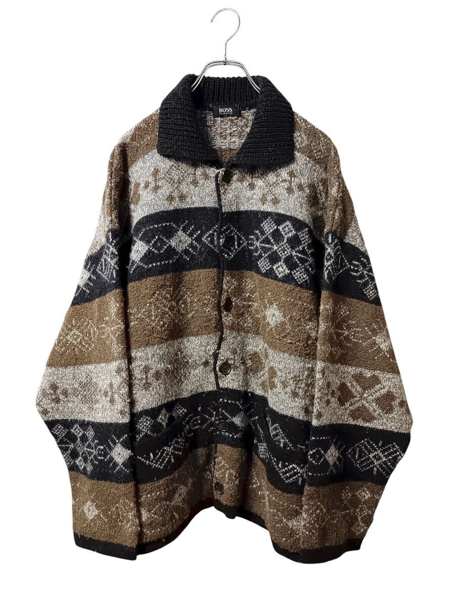 (D) BOSS HUGO BOSS ヒューゴボス ウール ニット カーディガン 52 ブラウン系
