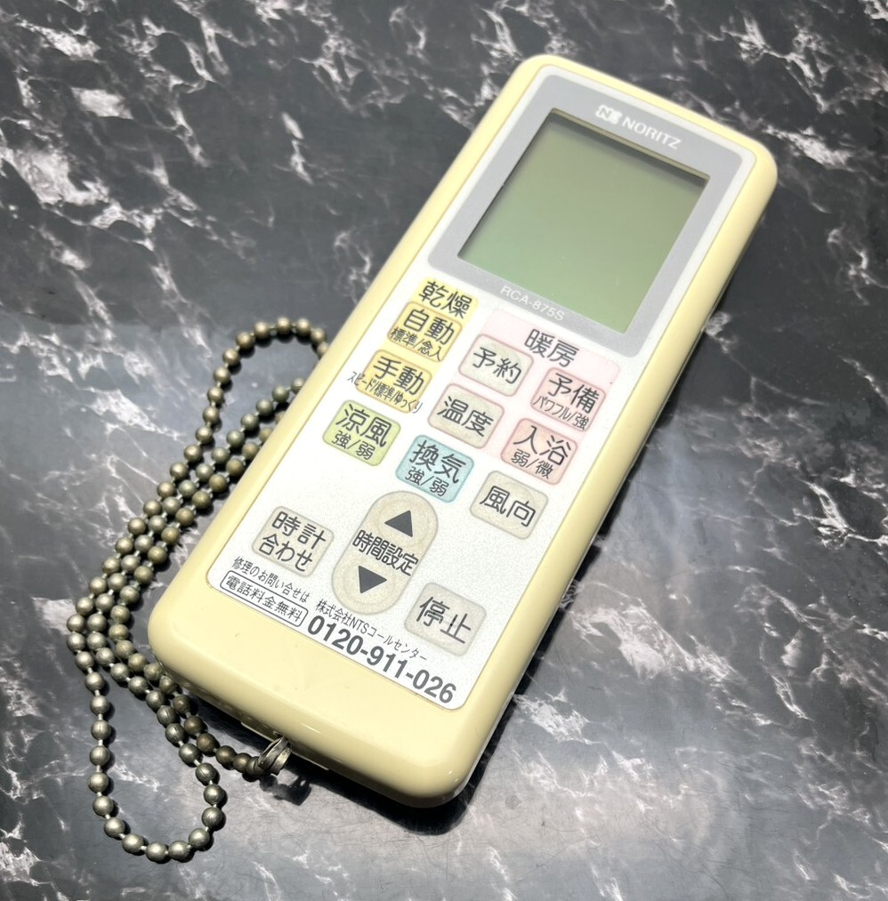 【H615】NORITZ/ノーリツ/浴室暖房乾燥機用リモコン/RCA-875S/浴室暖房乾燥機/リモコン/動作確認済み/ゆうパケット可