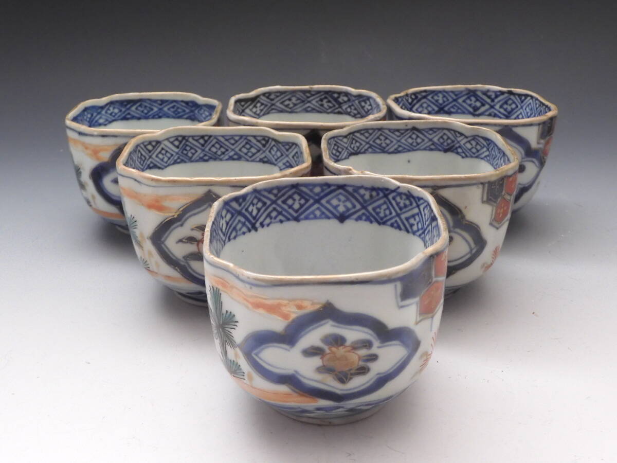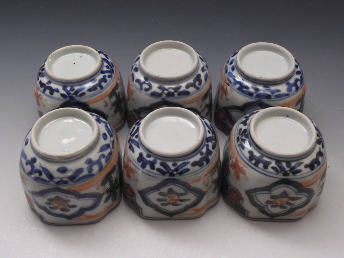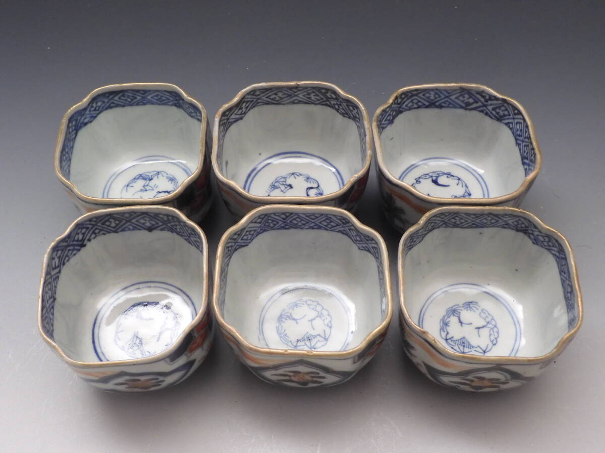| ◇桔◇古伊万里 色絵 柘榴 花草文 鉢 向付 6客 茶懐石 無傷 江戸期 K52◇ |