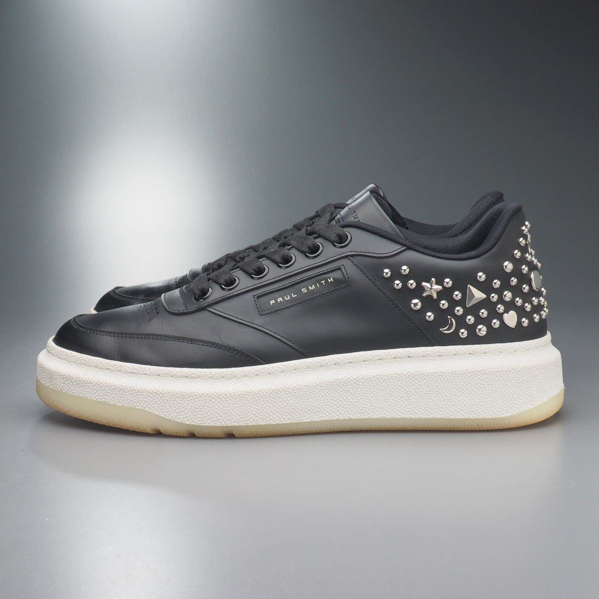 | GS5390//イタリア製*ポールスミス/Paul Smith*HACKNEY/メンズ/スタッズ装飾/レザースニーカー/ローカット/靴/黒/ブラック | |||