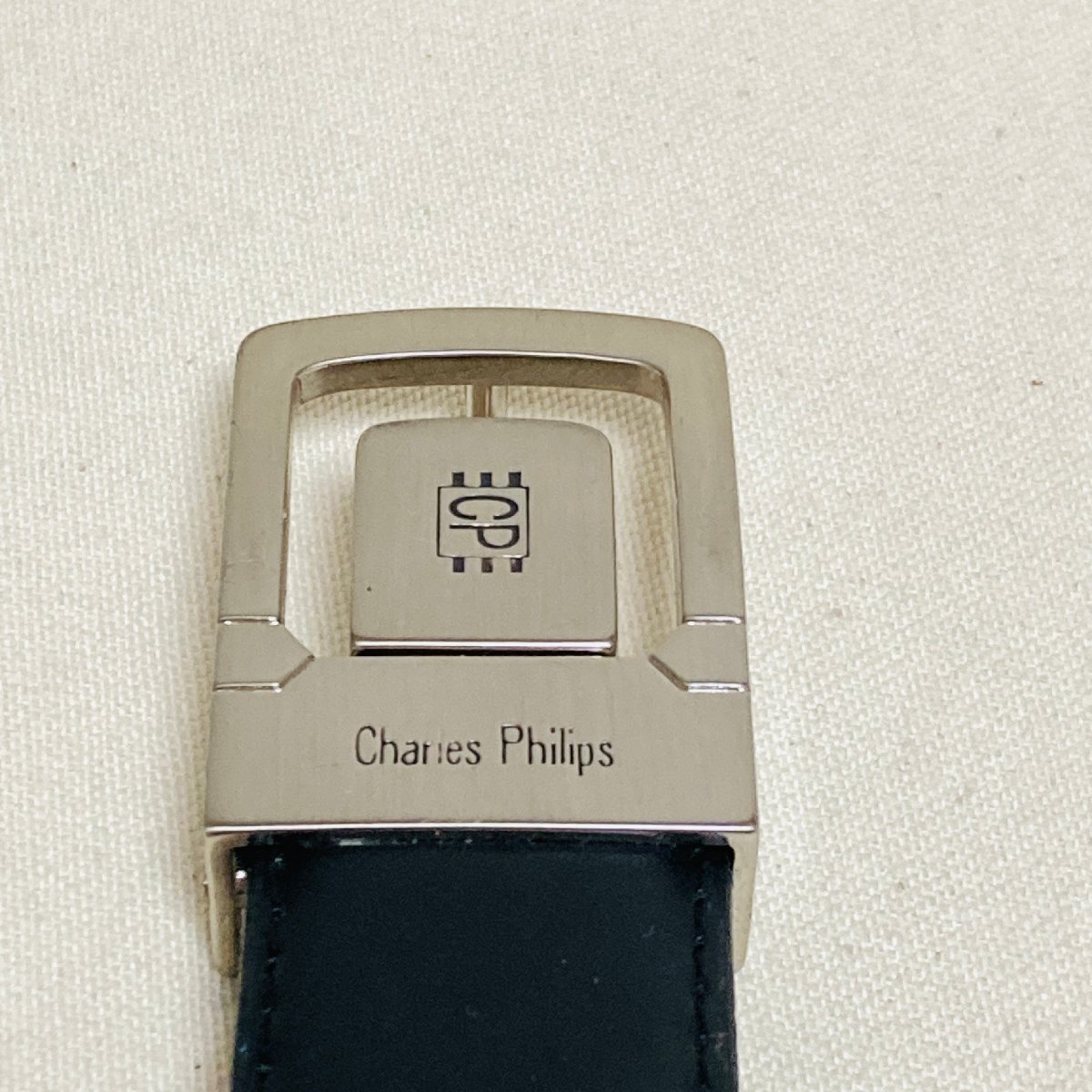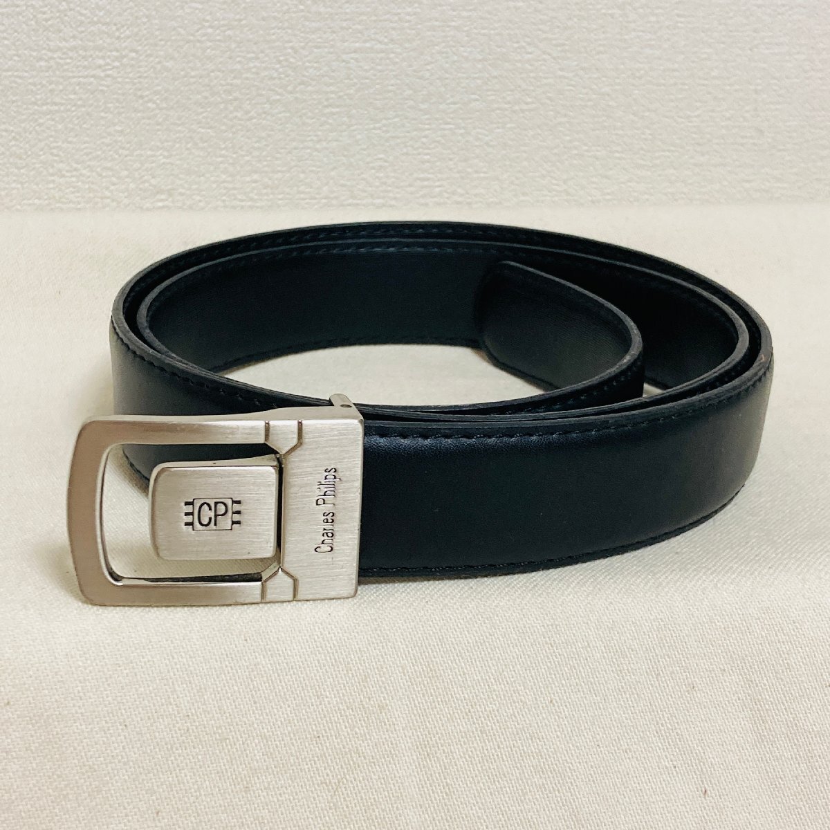 Charles Philips ロゴ デザイン バックル LEATHER/本革 レザー ベルト ブラック/黒