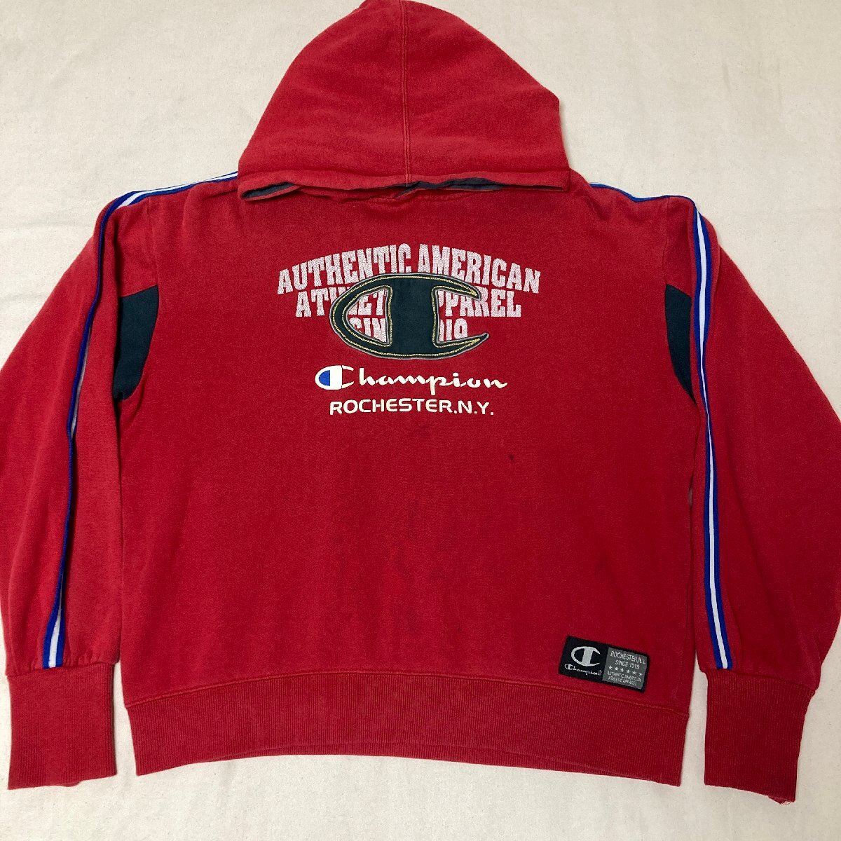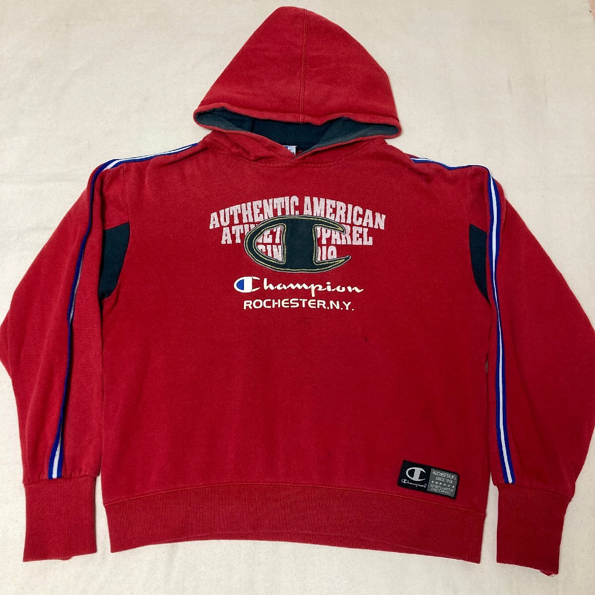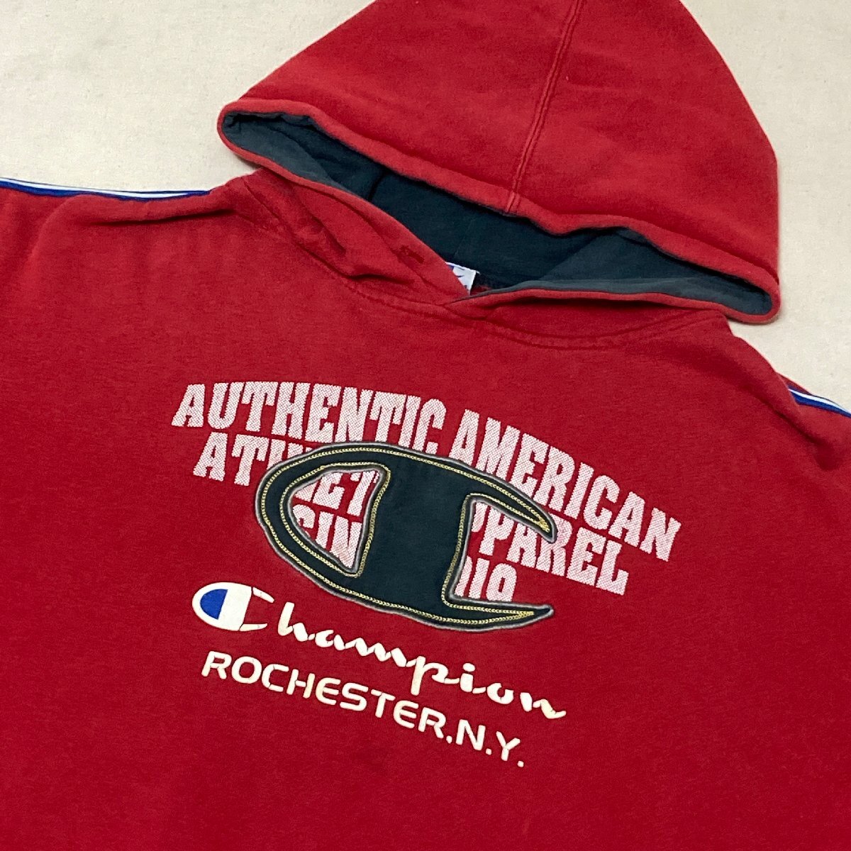Champion 希少 青タグ ビッグロゴ 刺繍/プリント スウェット パーカー レッド/赤 160