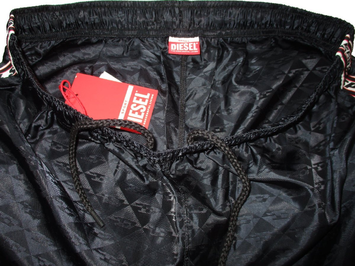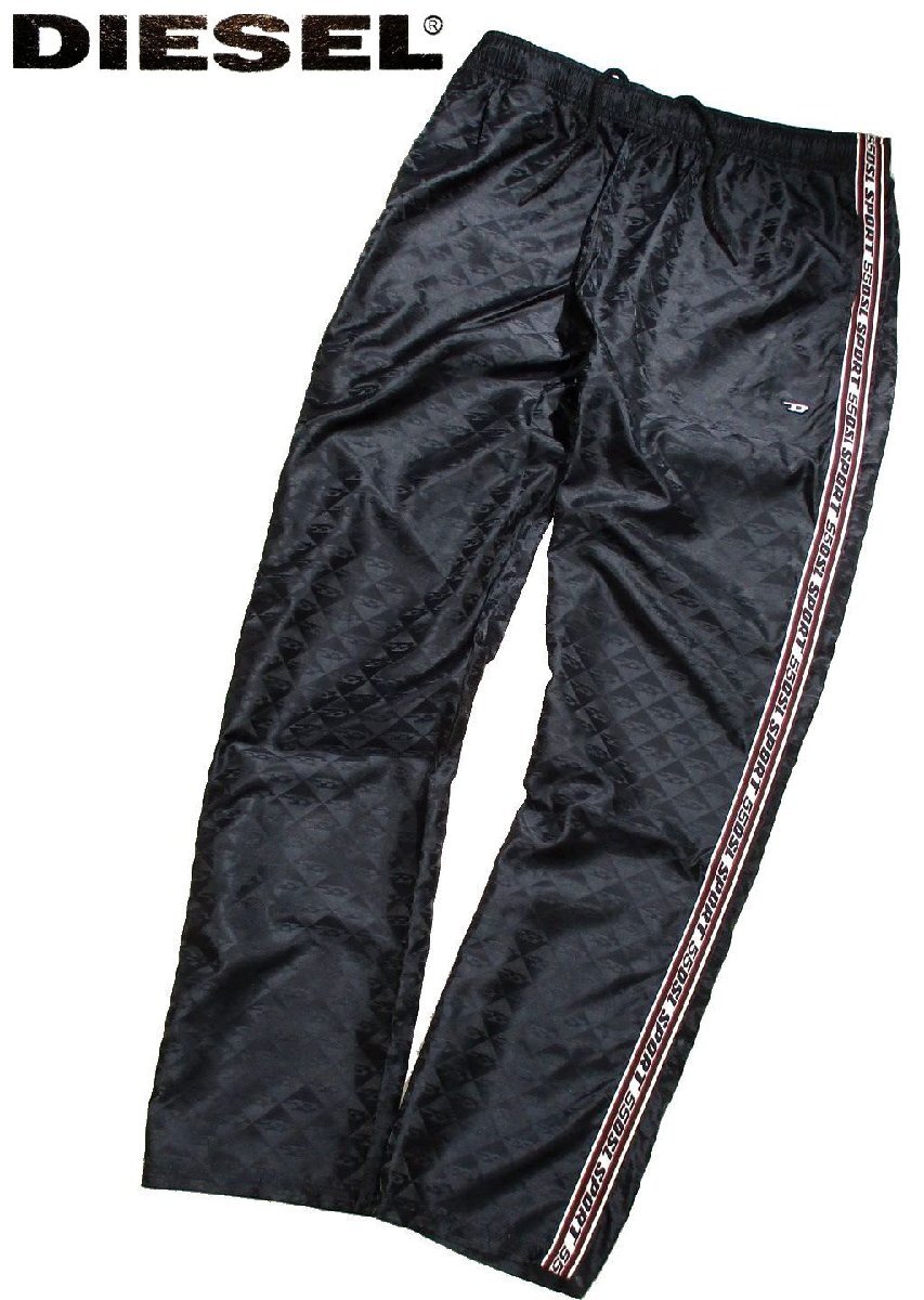 新品 L 定価3.3万▼ ディーゼル DIESEL 55DSL SPORT ▼ 太め ストレート ジャガード モノグラム パンツ コーティング調 メンズ 黒