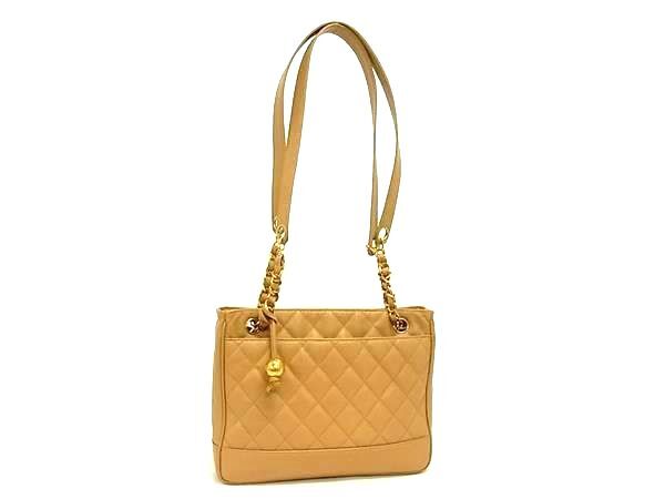 1円 CHANEL シャネル ココマーク マトラッセ キャビアスキン チェーン トートバッグ ショルダー 肩掛け ライトブラウン系 EA3350