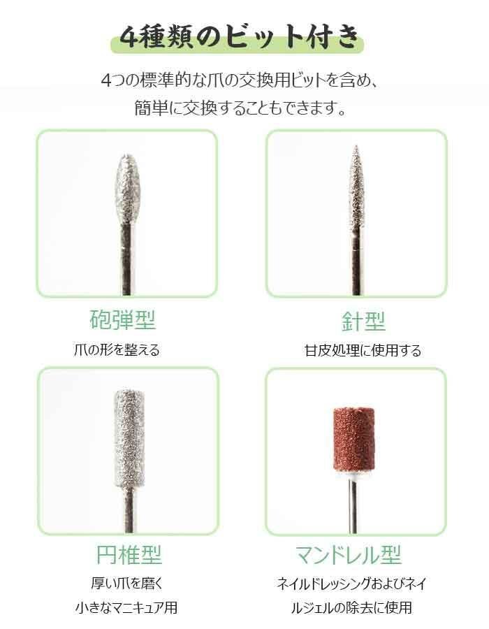 電動ネイルケア ネイルマシン 爪切り 爪磨き 角質除去 甘皮処理 正/逆回転/スピード無段階 高速回転 低振動 低騒音 ☆カラー/4色選択/1点