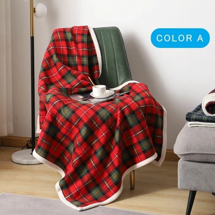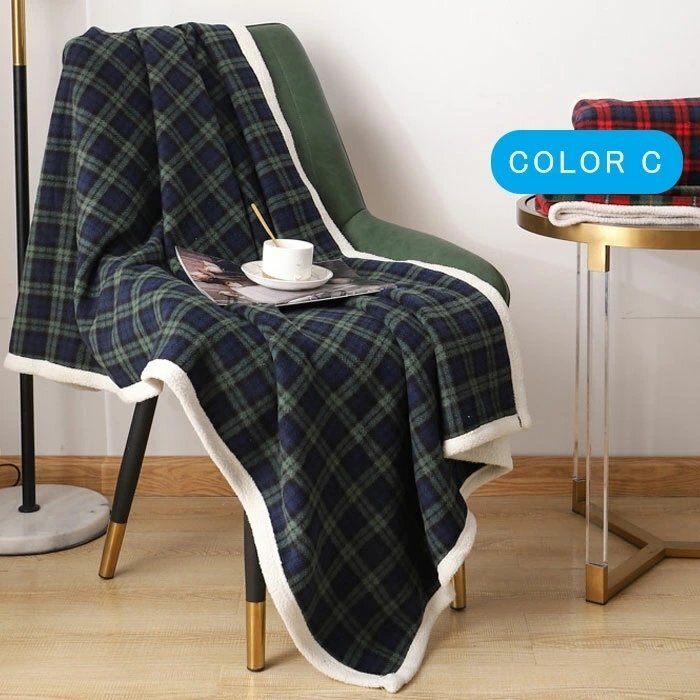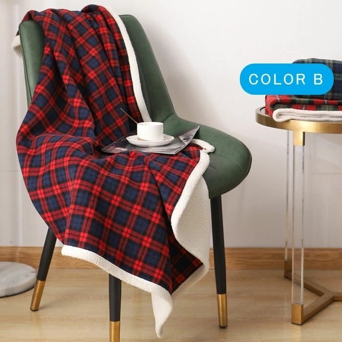 毛布 シングル 冬 秋 毛布 ラムカシミヤ混ソフトブランケットウォームストライプ寝具 格子縞の受信毛布屋外キャンプ 敷物 (COLOR B)