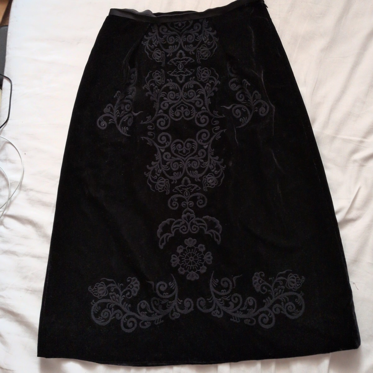 FiveFOXのブランド アルチザンの別珍 刺繍入りスカートです。本体はレーヨン65%ポリエステル35%です。