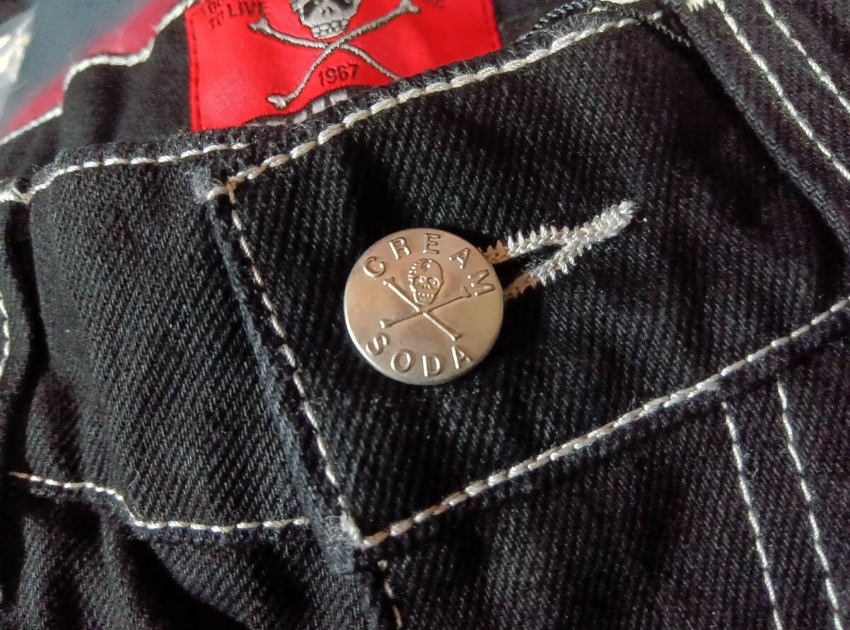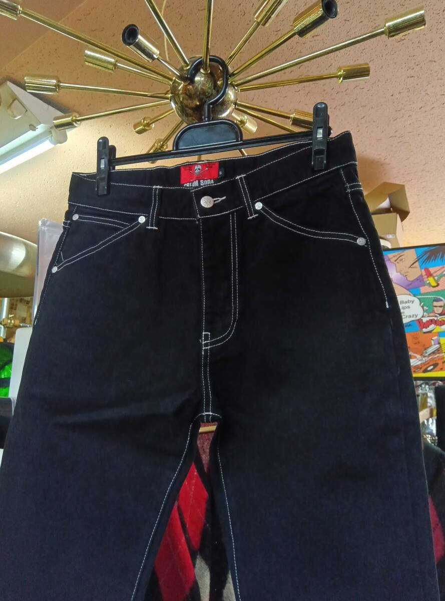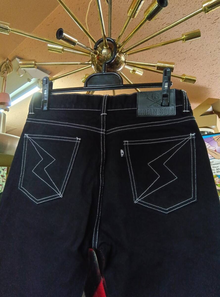 Lサイズクリームソーダデニムパンツ黒!検索CREAMSODAブラックキャッツピンクドラゴンブルーエンジェル昭和レトロガイコツ髑髏ロカビリー