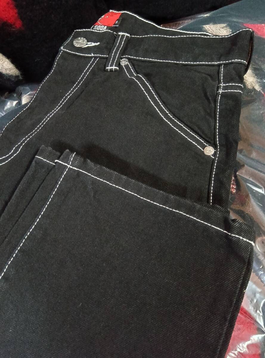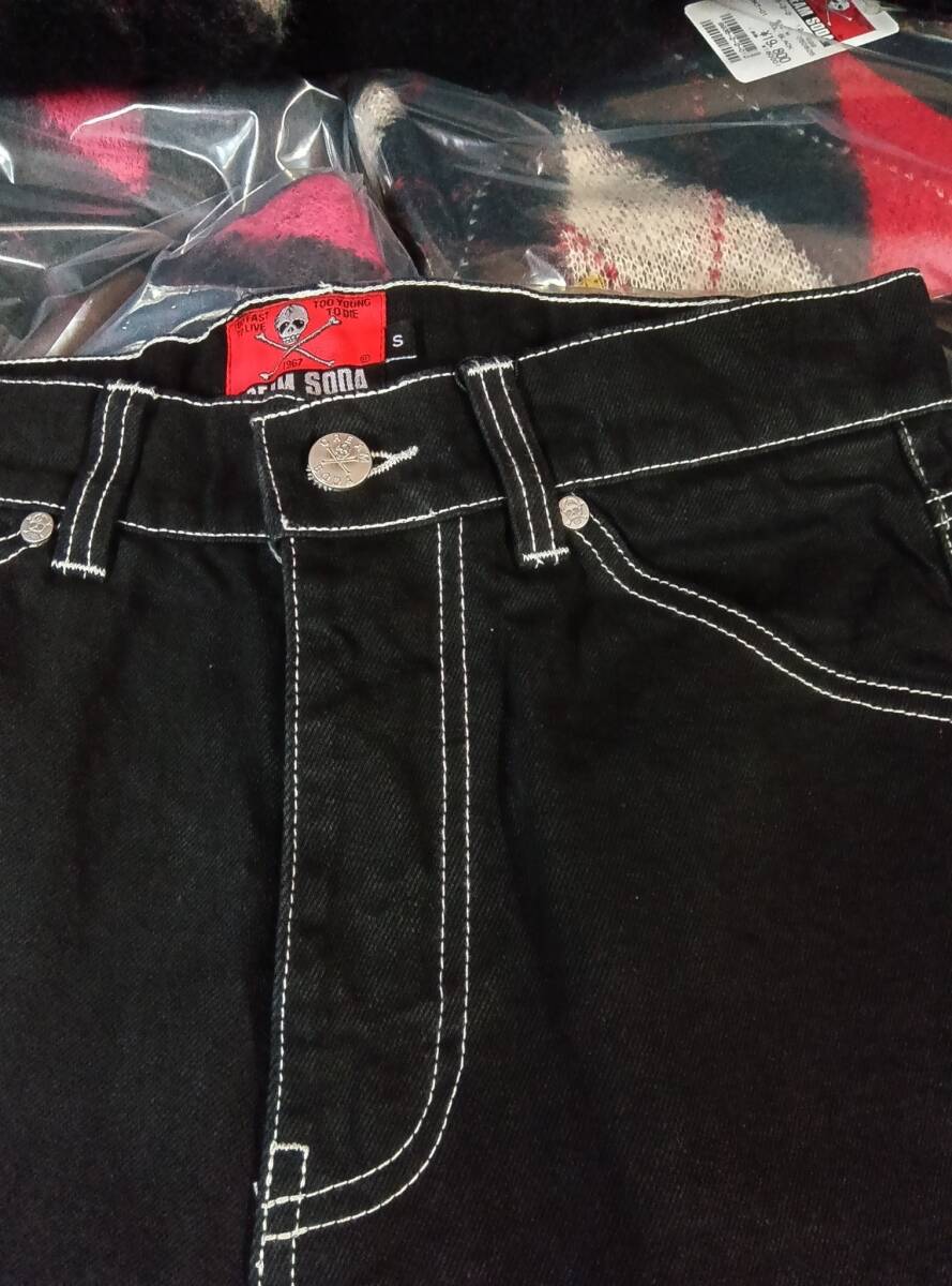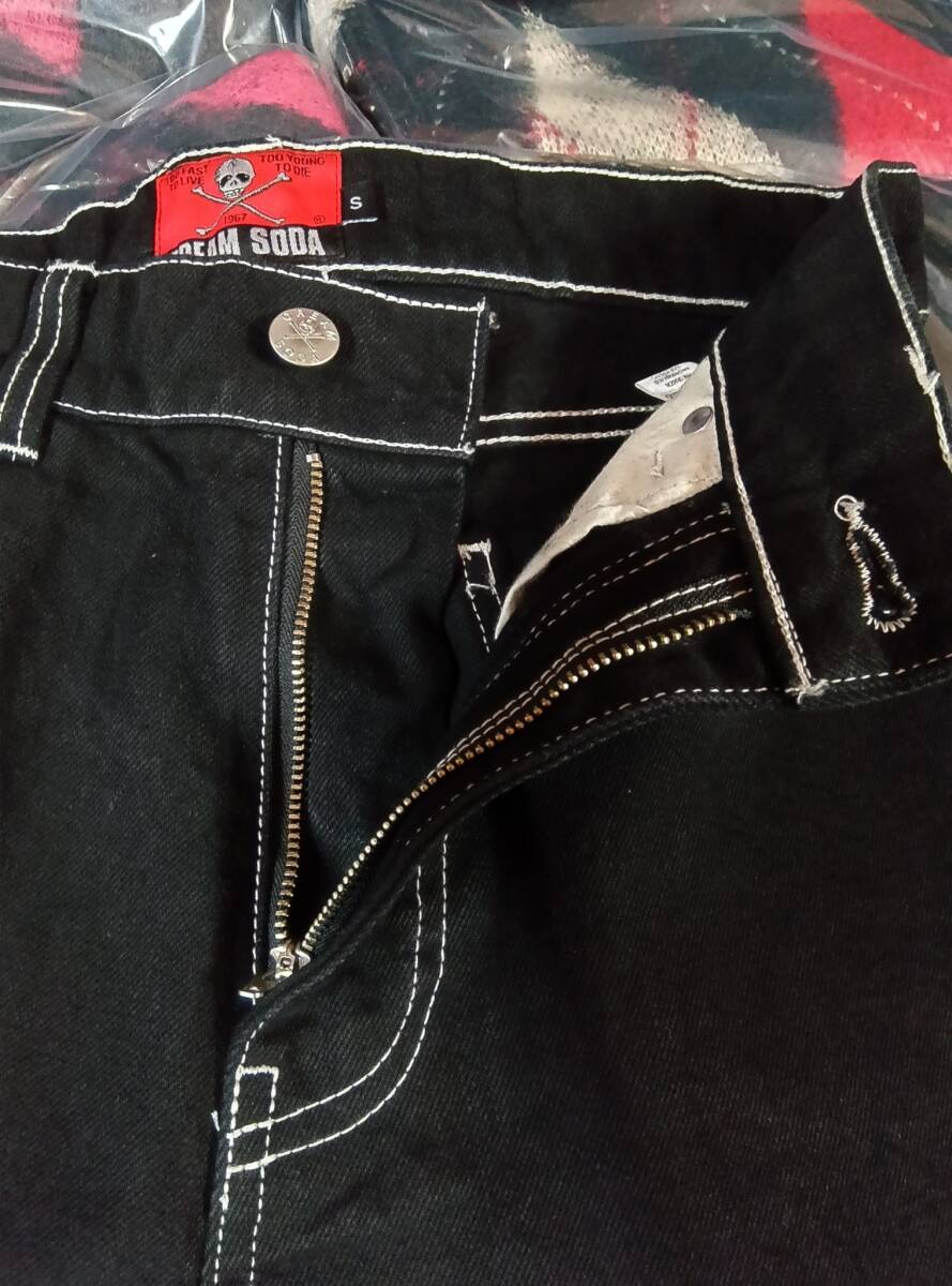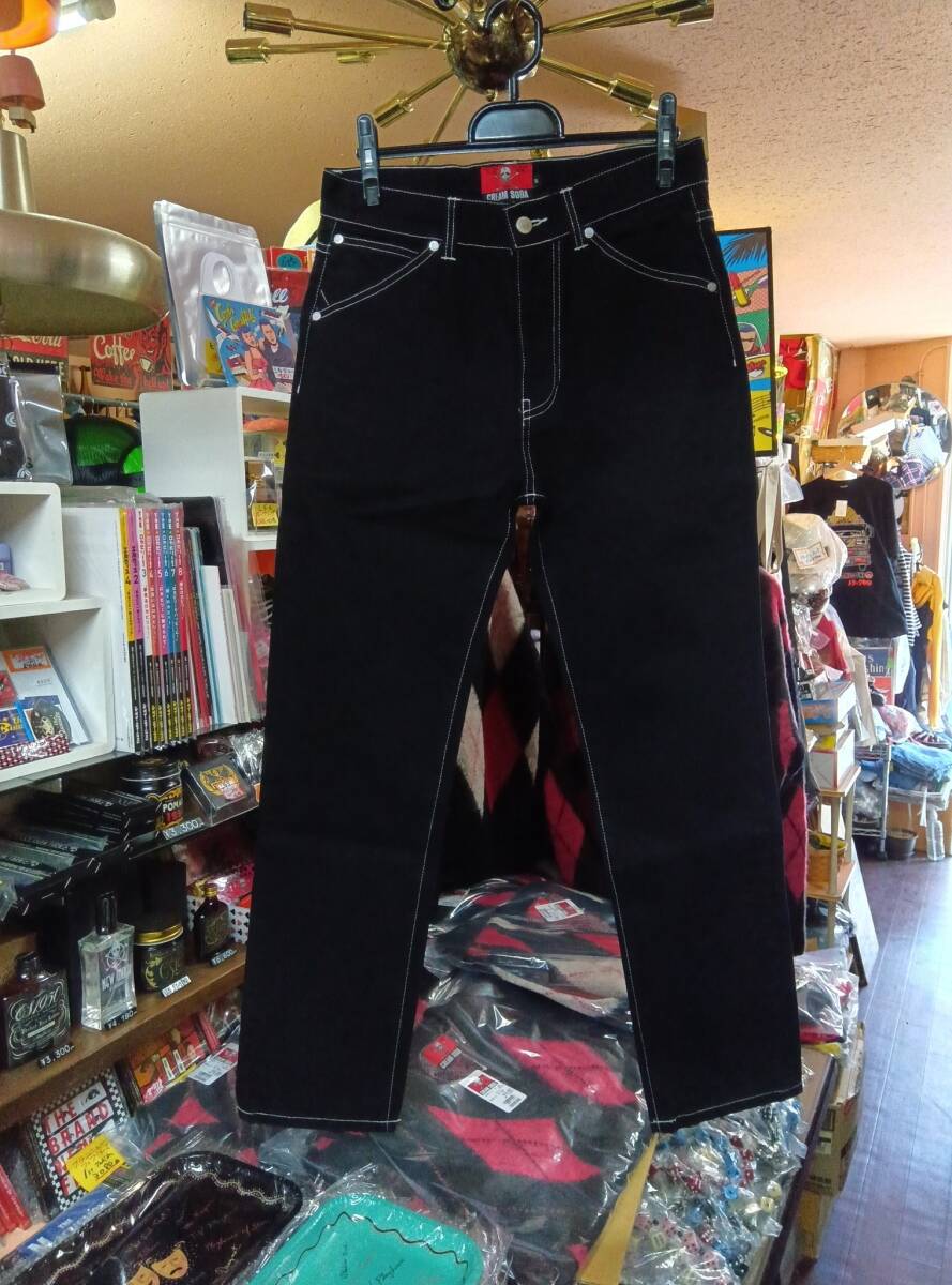 Lサイズクリームソーダデニムパンツ黒!検索CREAMSODAブラックキャッツピンクドラゴンブルーエンジェル昭和レトロガイコツ髑髏ロカビリー