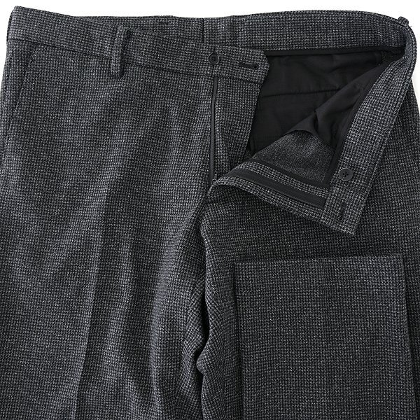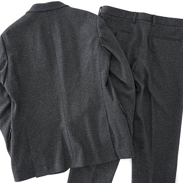 「FLEX JERSEY」は、伸縮性のあるジャージー素材を使いながらも、「NEW BRIDGE」のモデルをテーラリングの技術を活かし仕立てた、楽であることときちんと感を両立させた革新的なモデルです。 原色原料を精紡交撚して作り上げた杢糸を使用することで、色合いに奥行を持たせています。 編みで表現されたハウンドトゥース柄を霞ませることでシックな表情のウール混編み素材です。 編地素材なので伸縮性に優れており、きちんとしたテーラードなのに動きやすくてリラックスできる羽織り心地です。 ビジネスシーンはもちろん、オフの日のきれいめコーディネートにも最適な一着です。 セットアップアイテムなので、スーツとしての着用はもちろん、上下を別々のコーディネートに投入することもでき、一着で幅広く着まわせる汎用性の高さも魅力のアイテムです。 【デザイン】 ・総裏仕立て ・フロントは2つボタン ・サイドベンツ ・袖先は4つボタン(開き見せ) 【スラックス】 ・ノータック ・ジッパーフライ ・テーパードシルエット |