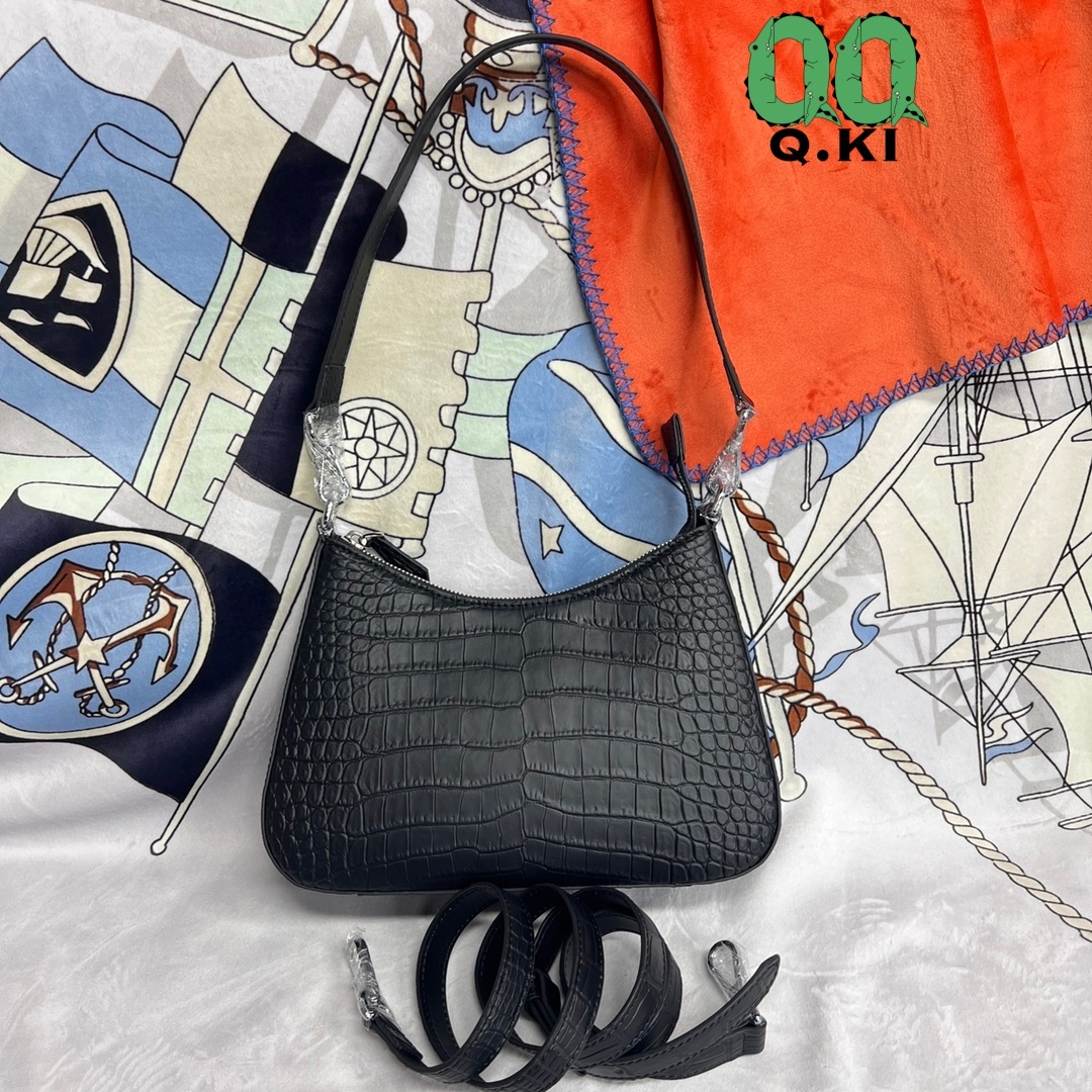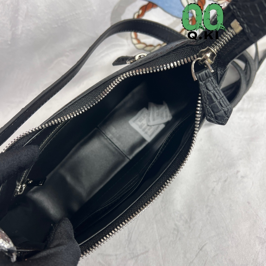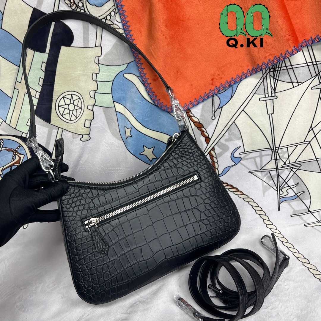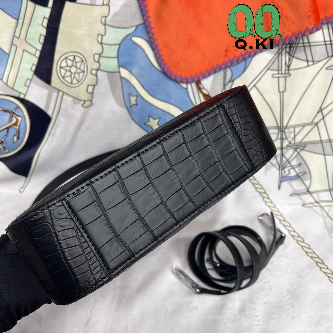 美品 本物クロコダイルレザー ショルダーバッグ 肩掛け 鰐革センター取り レディースバッグ 水染黒 軽量