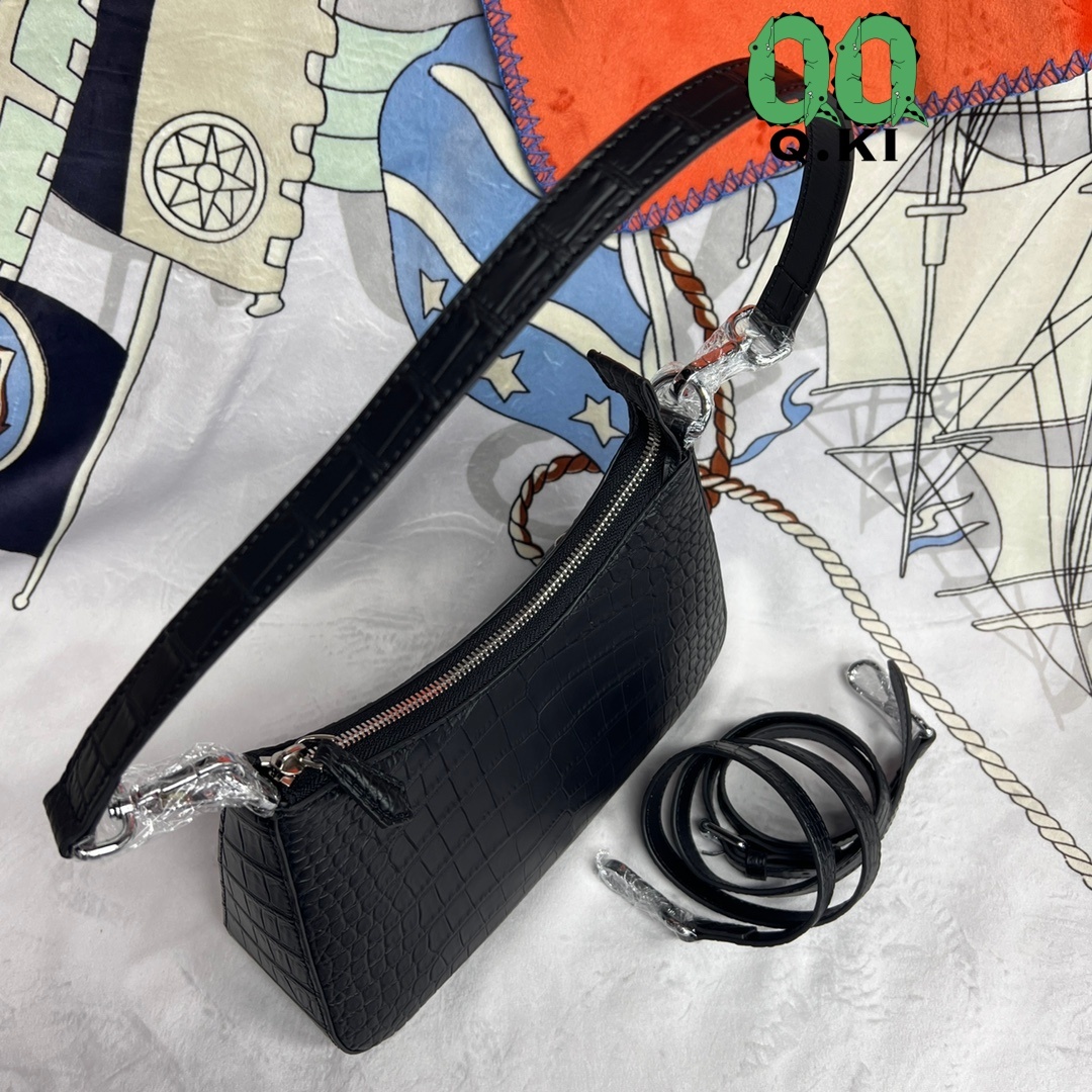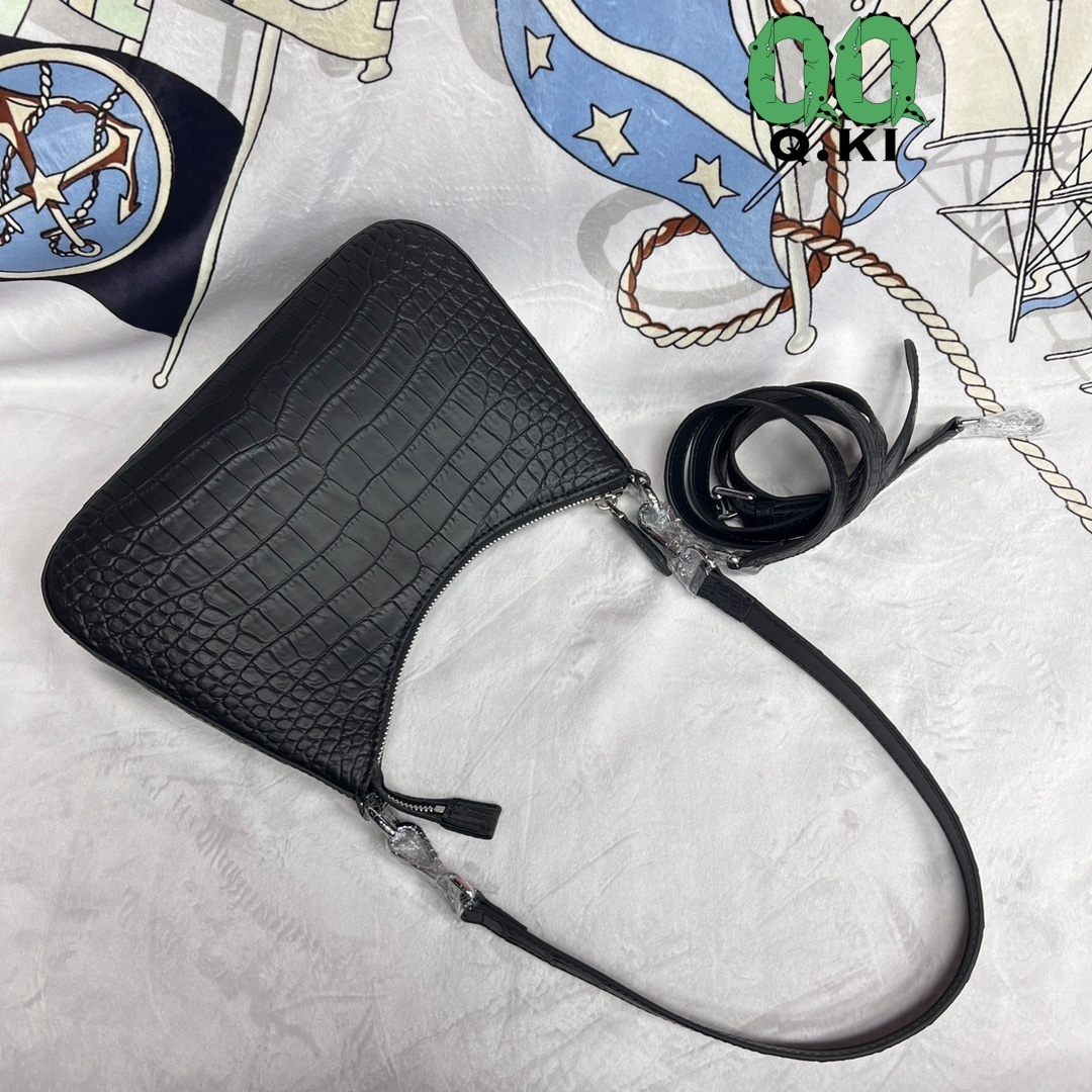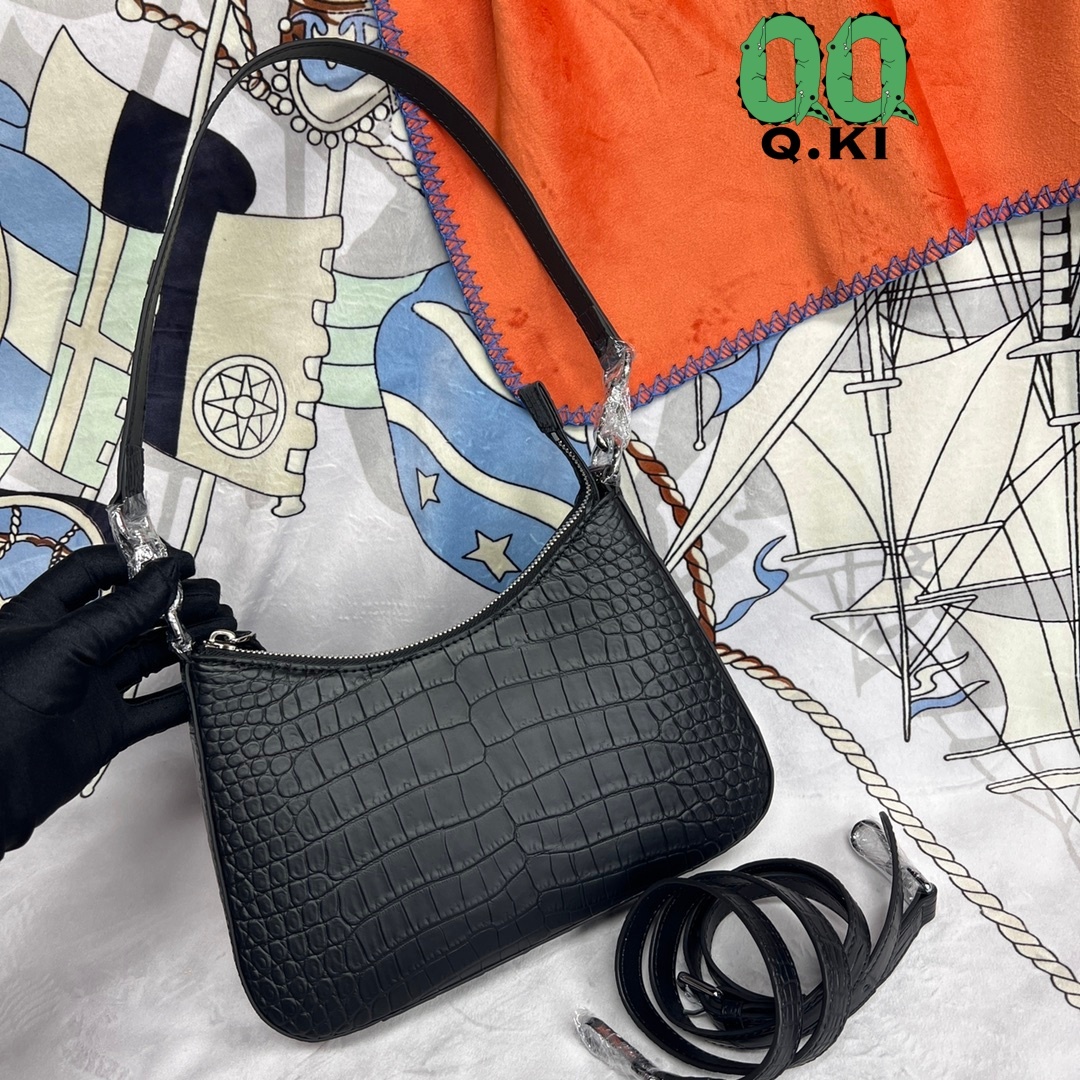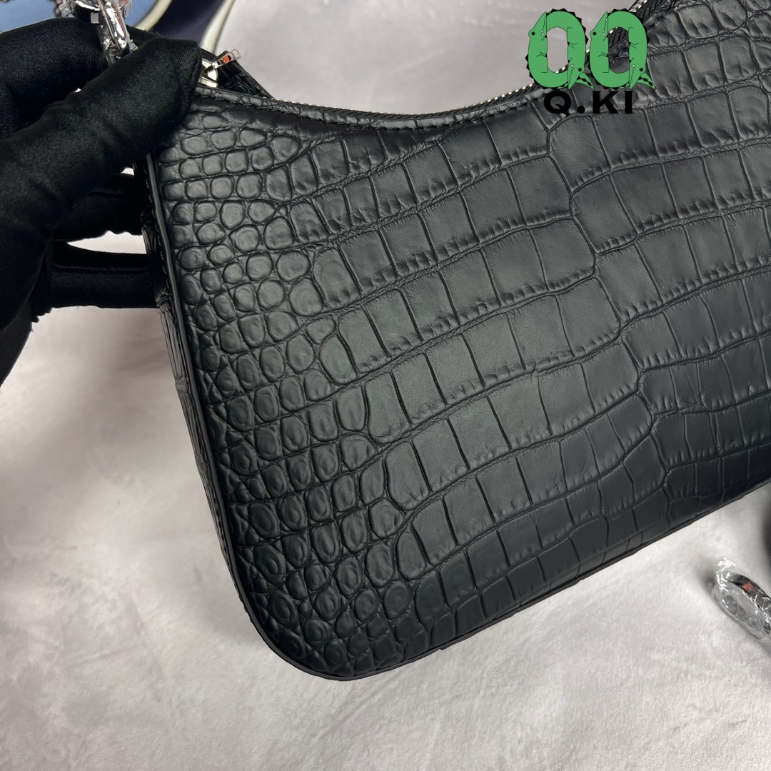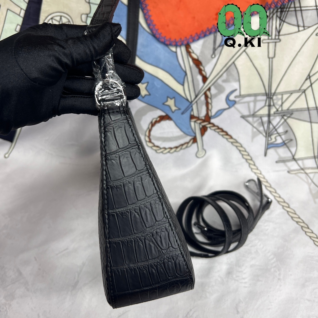 美品 本物クロコダイルレザー ショルダーバッグ 肩掛け 鰐革センター取り レディースバッグ 水染黒 軽量